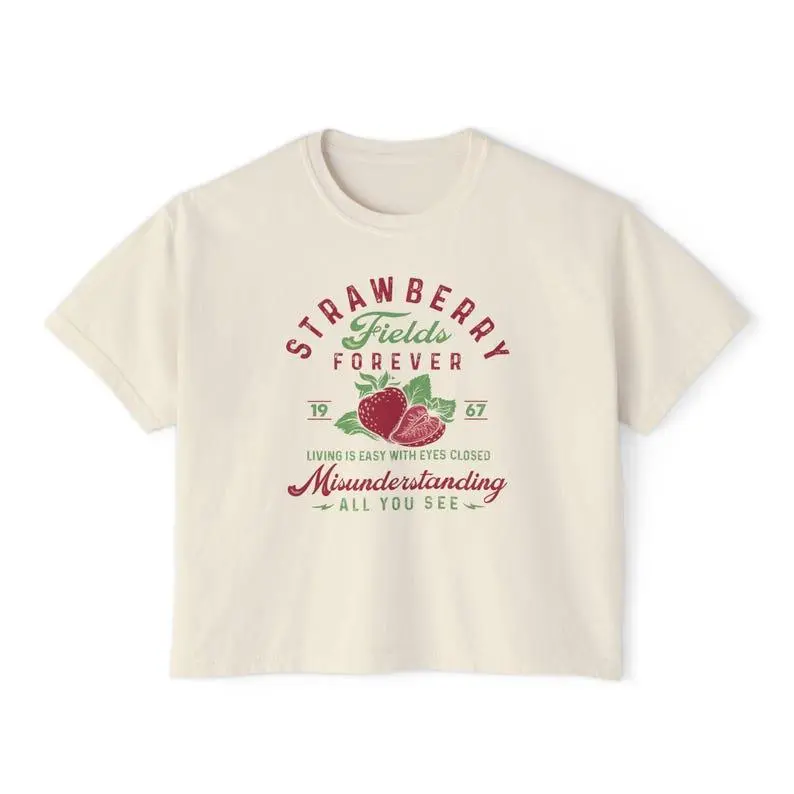 Strawberry Fields Aesthetic Graphic Crop Tee Retro Vintage Boxy Summer Shirt