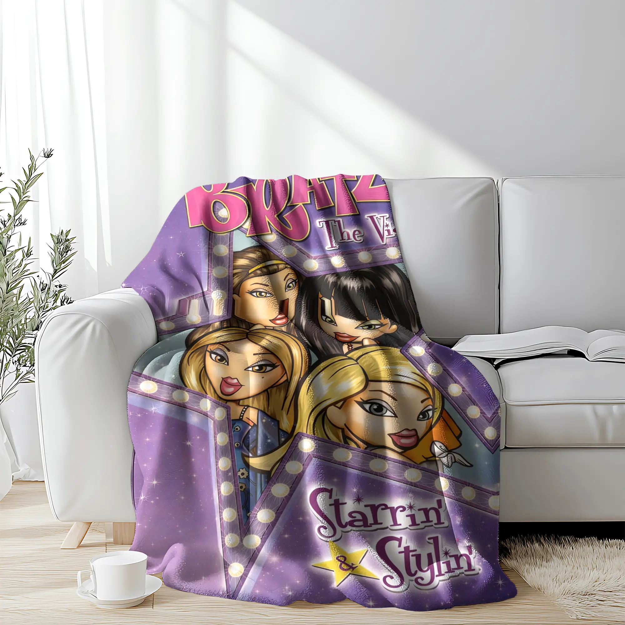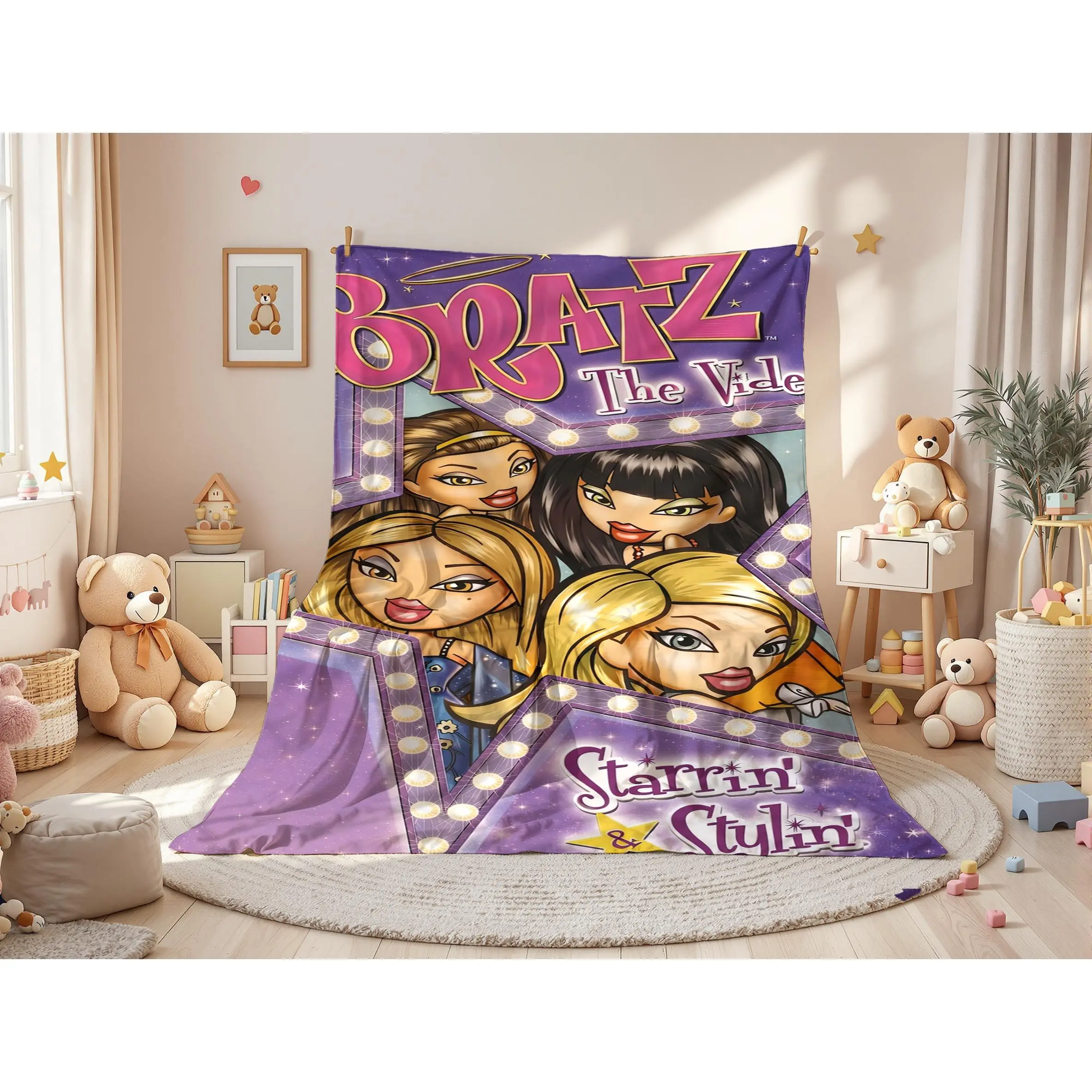 Bratz Starrin' & Stylin' The Video Fleece Blanket – Retro Y2K Bratz Dolls Plush Throw, Perfect for 2000s Nostalgia Fans, Ideal for Girls Bedroom, Dorm or Vanity Room Decor