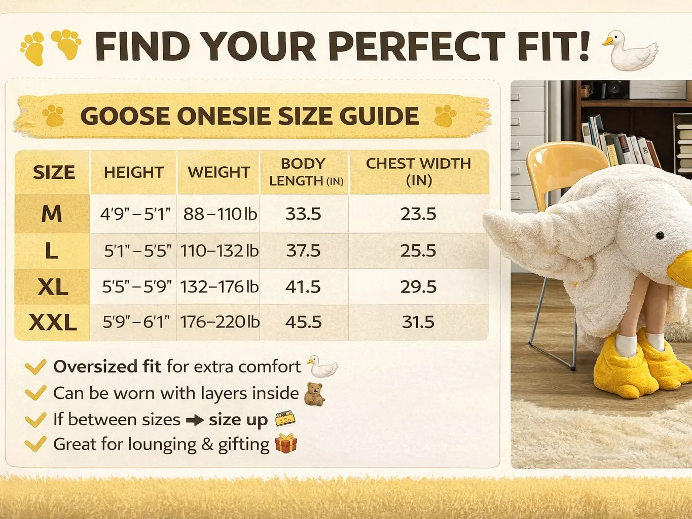 Funny Goose Onesie Wearable Blanket – Oversized Fleece Hoodie with Sleeves & Non-Slip Slippers for Men & Women (Black/White)