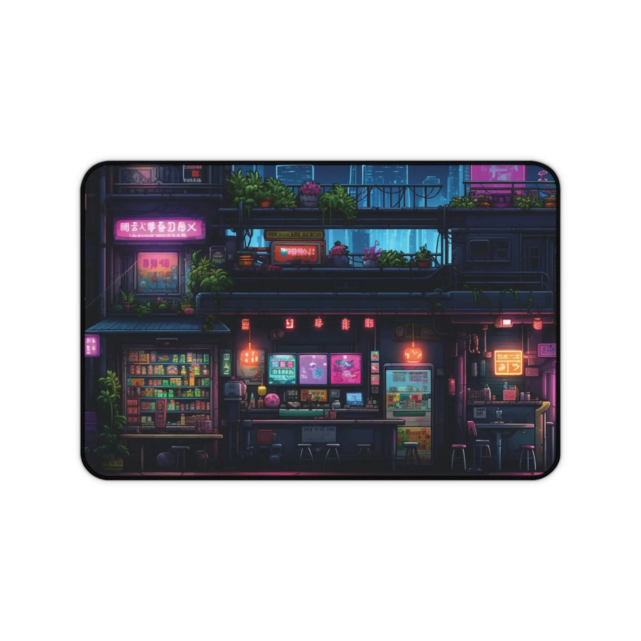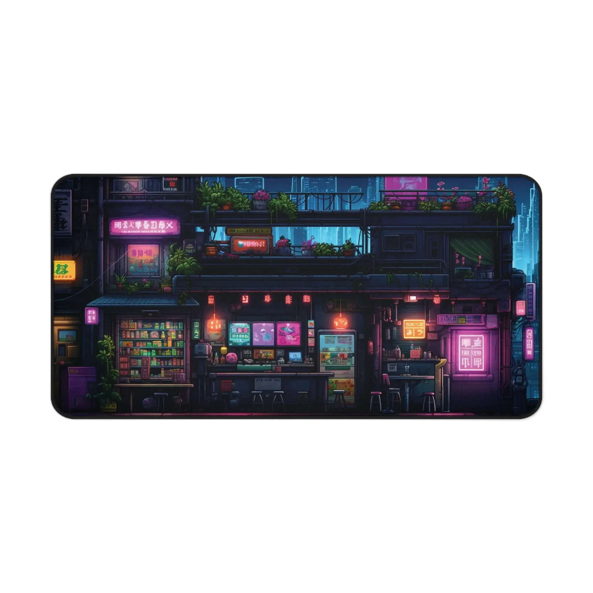 Cyberpunk Modern City, Ramen Shop Desk Mat, Neon Lights Desk Pad, Gaming Mousepad XL