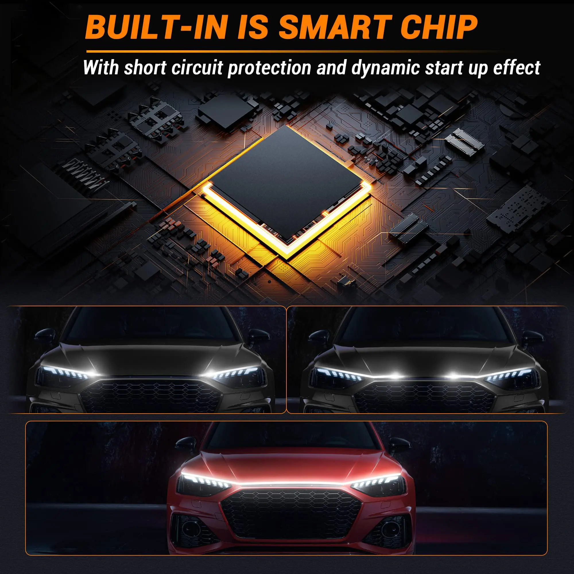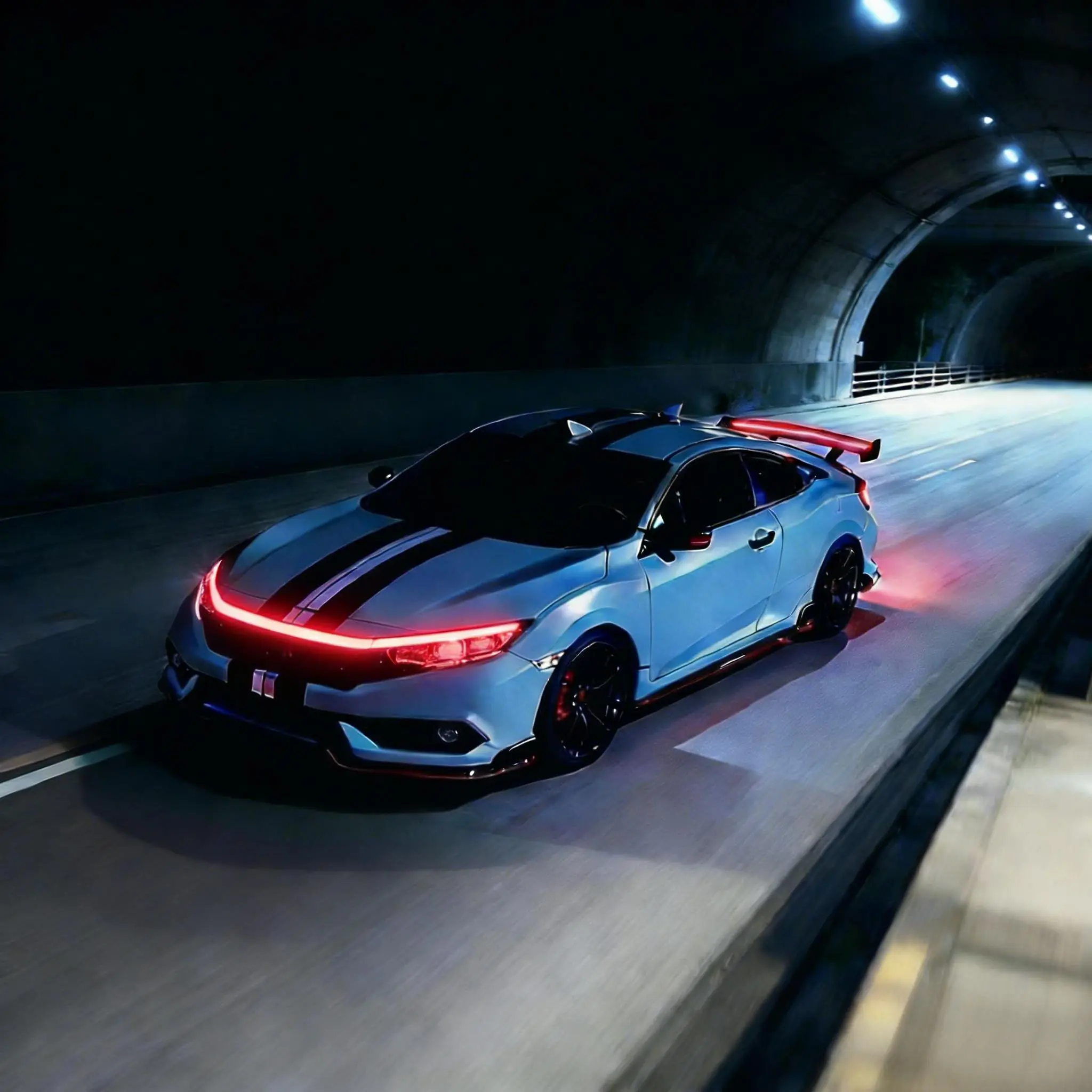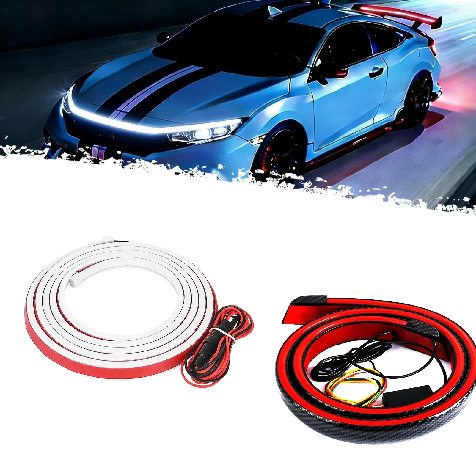 The DIBMS Decorative Combo Kit includes: 71-inch High-Brightness LED Hood Gap Light Bar / Carbon Fiber LED Tail Light Bar, revitalizing your vehicle. Front Hood Fitment: This 71-inch light bar delivers a dazzling dynamic scanning effect, instantly elevating your car's style. The scan-activated light guide strip design adds a fashionable highlight to your ride. Rear Carbon Fiber LED Tail Light Strip: Enhances visibility and safety. This innovative strip supports multiple lighting modes, allowing you to freely customize tail light effects and add a unique charm to your vehicle.