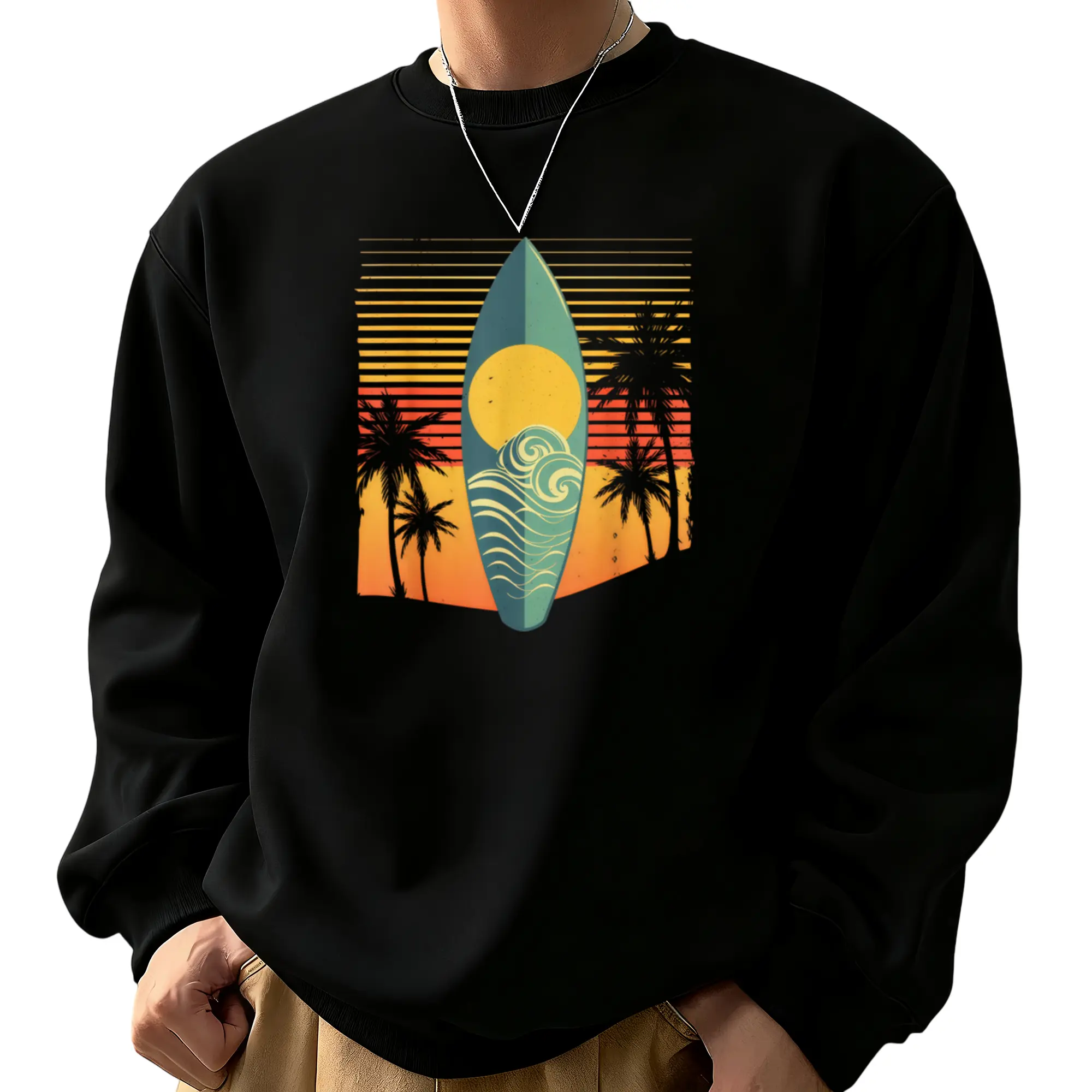 5. Cool Surfboard Print Long Sleeve Sweatshirt for Men and Women Surf Fans