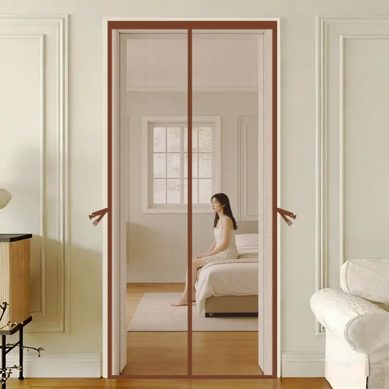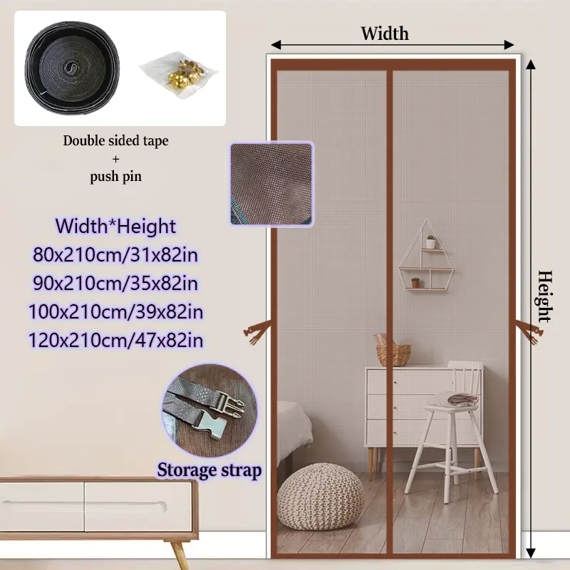 This door acts as an effective insect barrier. The coffee brown mesh partition door curtain provides a stylish and functional solution. It keeps insects out while allowing fresh air to circulate. Perfect for any home or office setting.