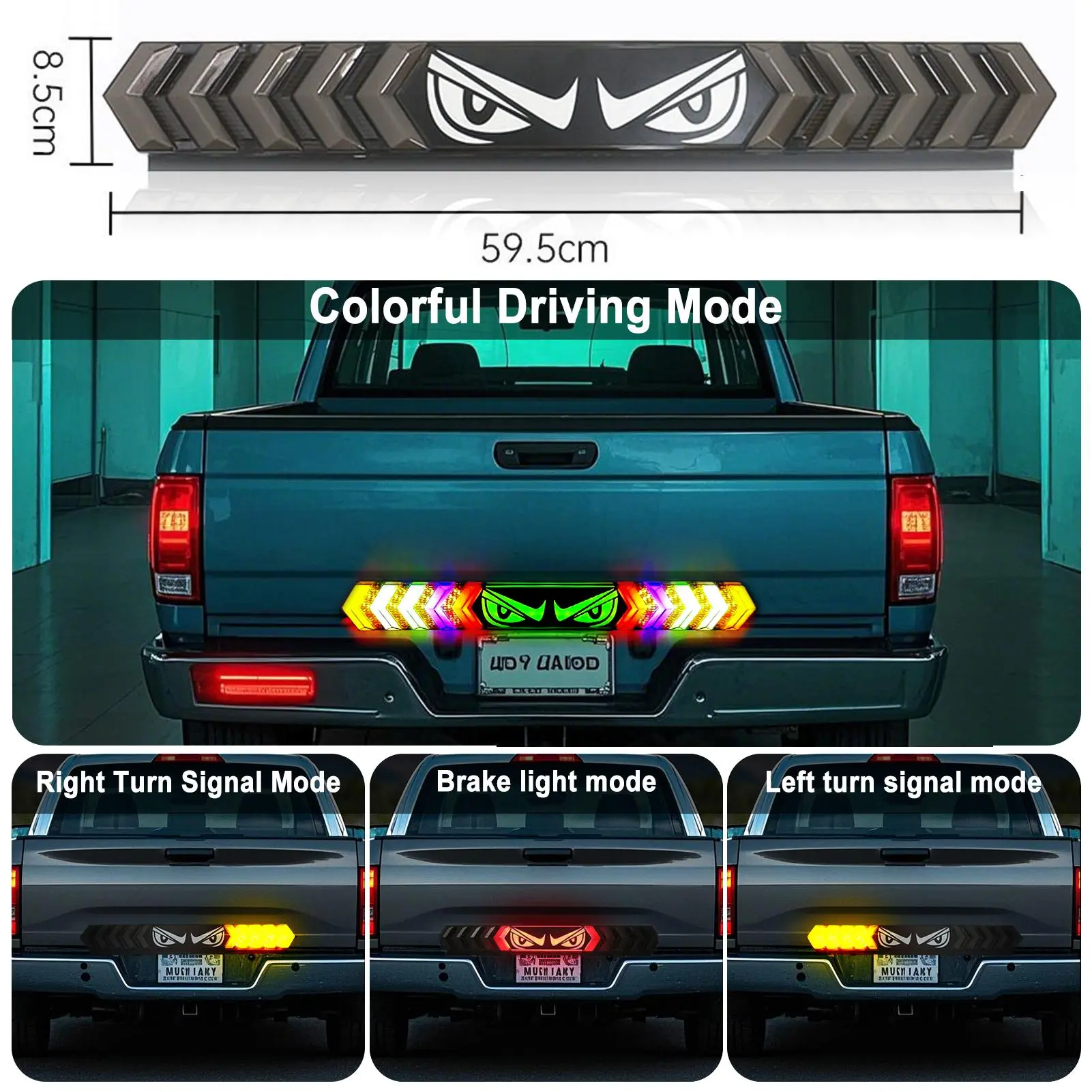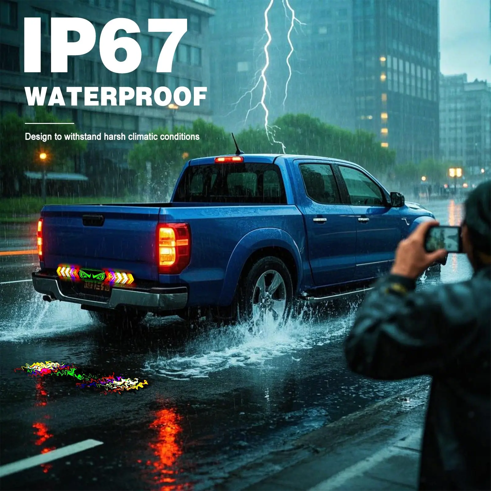 Enhance your truck's visibility and safety with the 24'' Devil Eyes LED Tailgate Light Bar Strip. This versatile kit includes a waterproof design that ensures your truck remains safe in wet conditions, making it perfect for rainy days.