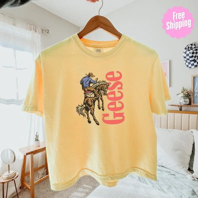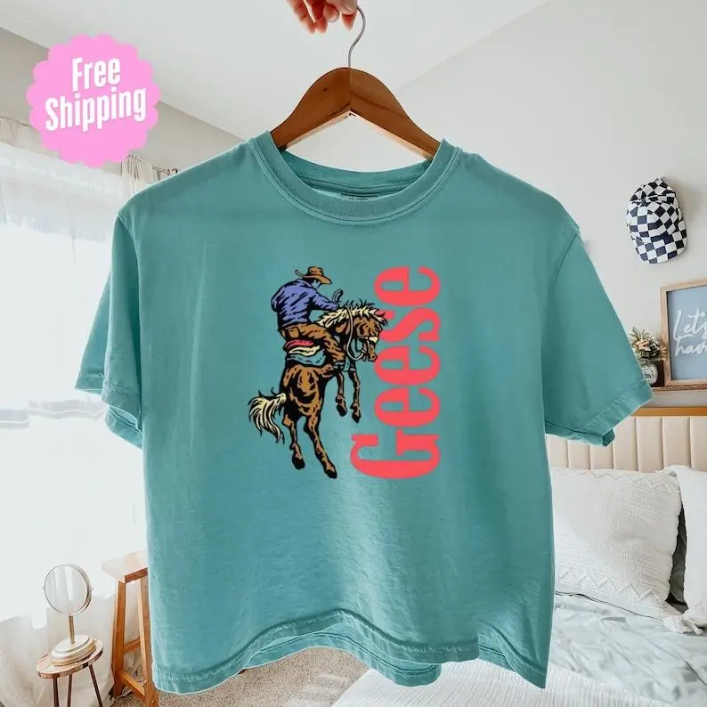 Goose Western Band Graphic Crop Tee Boxy Pigment Dyed Cotton Vintage Country Shirt