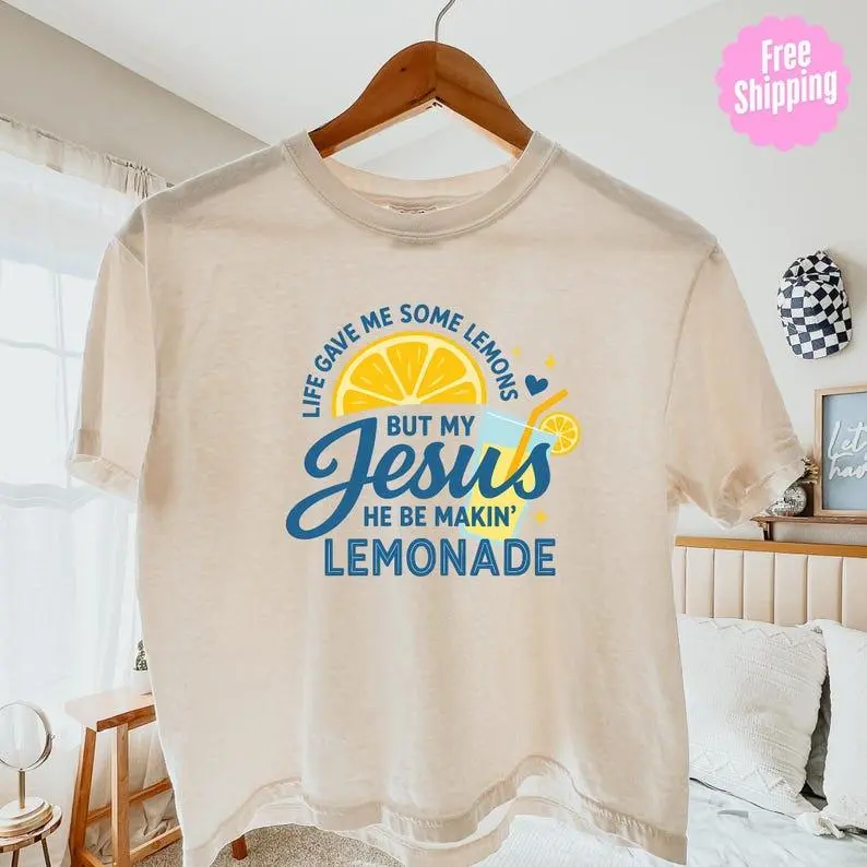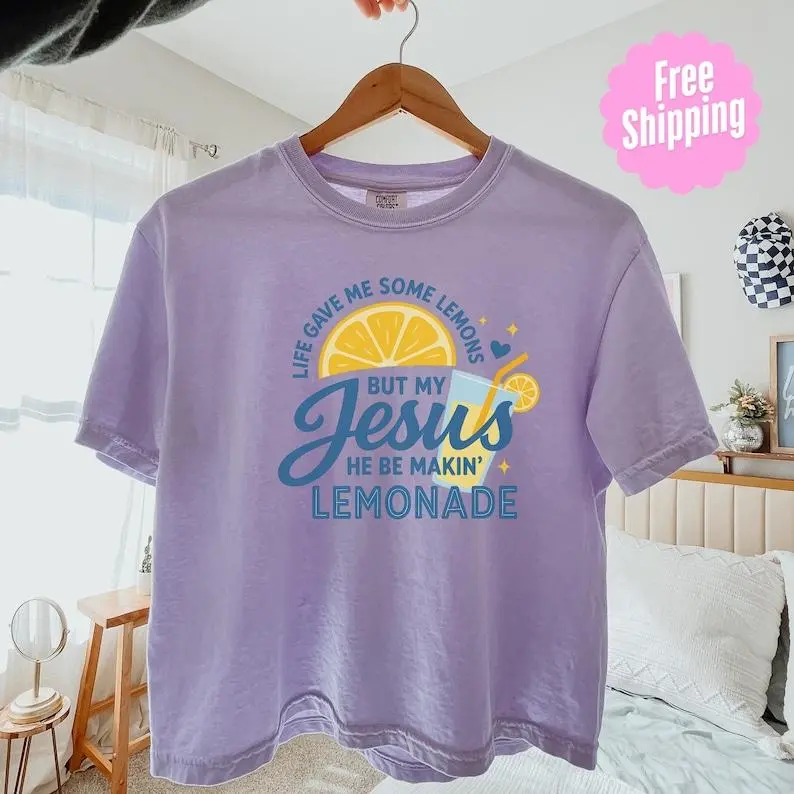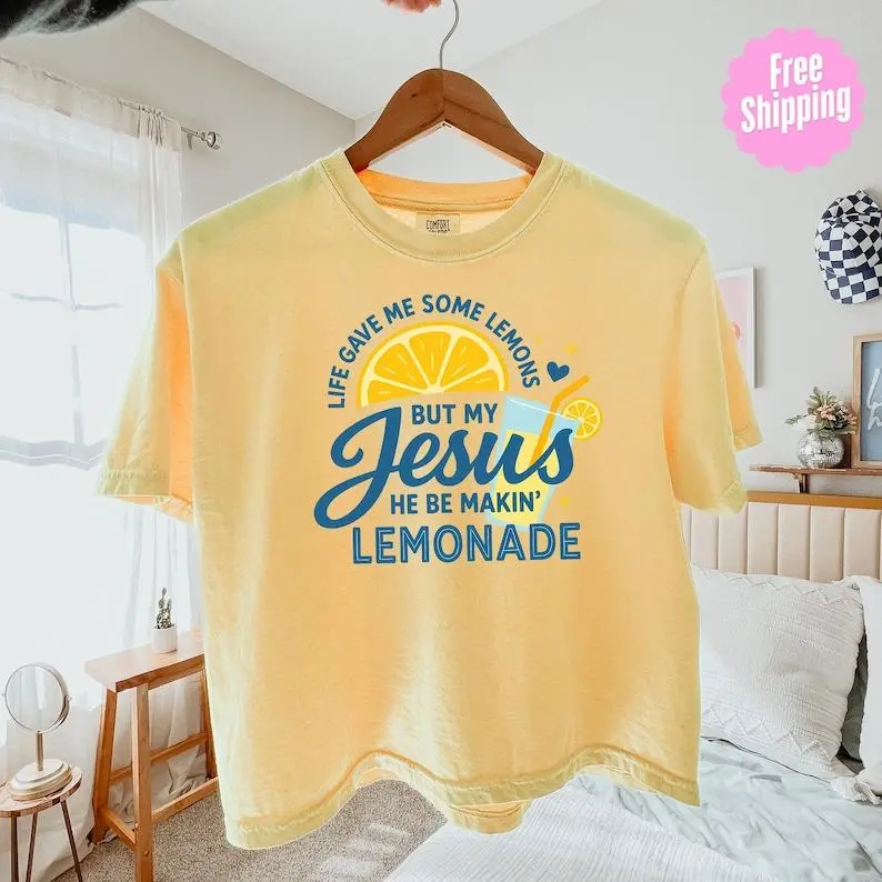 Faith Inspired Lemon Graphic Crop Tee Vintage Pigment Dyed Cotton Christian Shirt