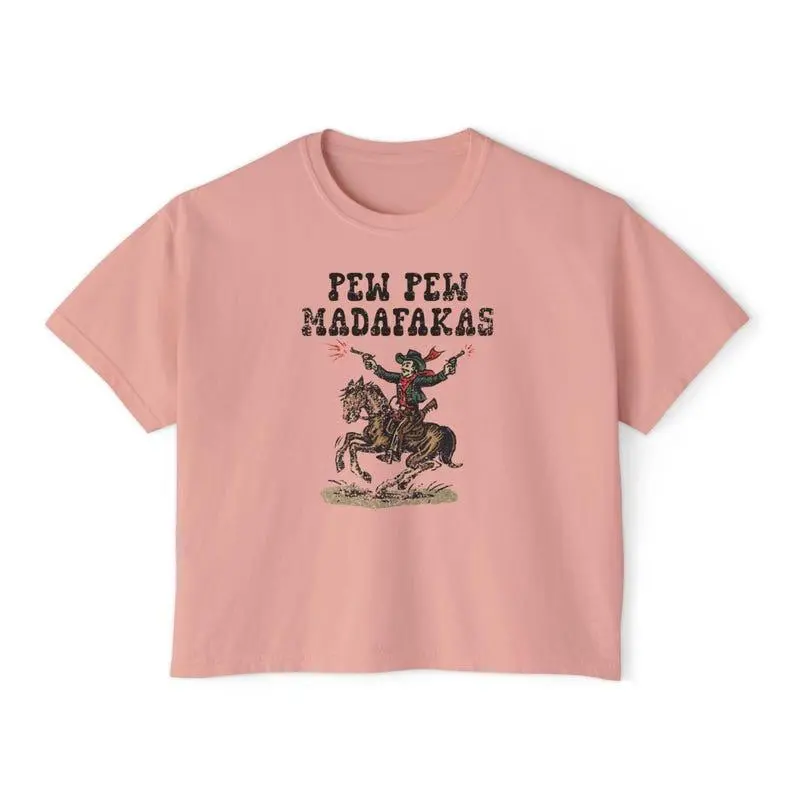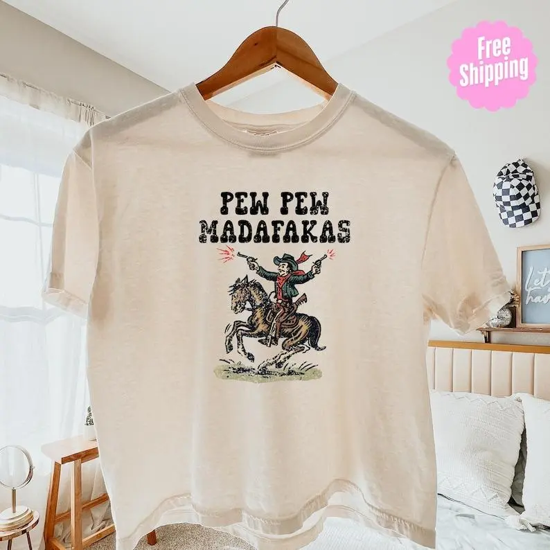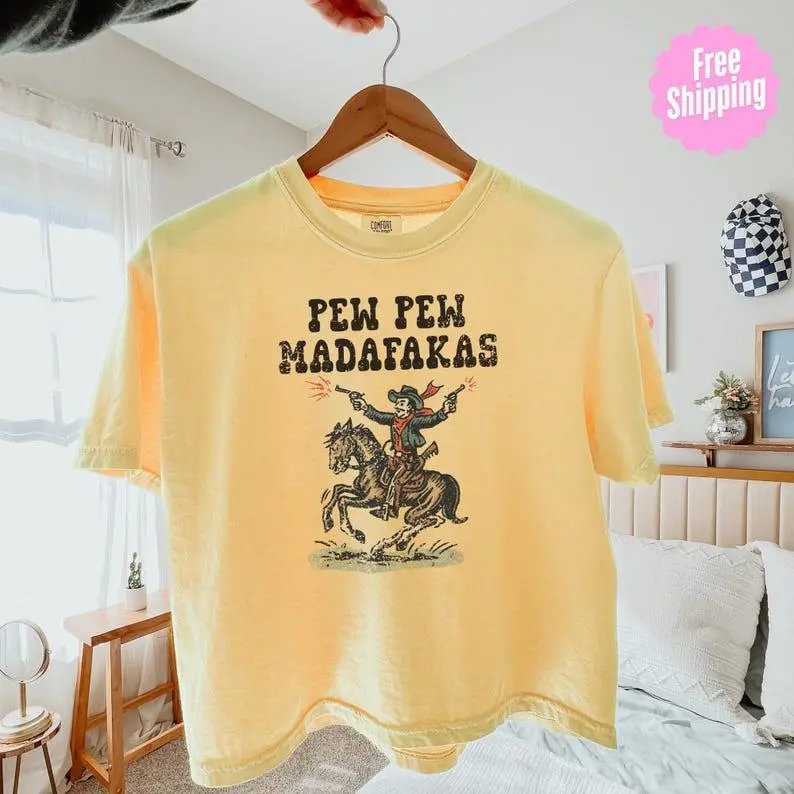 5. Pew Pew Cowboy Horse Graphic Tee Vintage Western Pigment Dyed Cotton Boxy Shirt