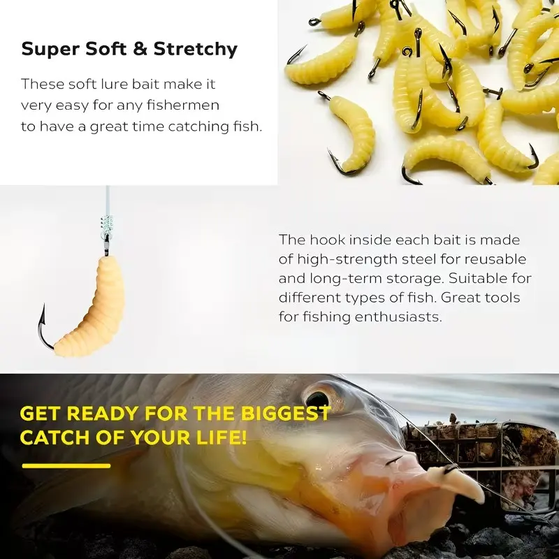 【Complete Kit】: Includes hooks and worms, providing everything you need for immediate use without additional purchases.