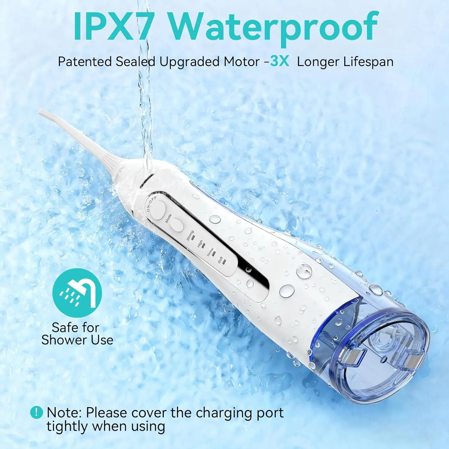 ·5 Specialized Tips for Family and IPX7 Waterproof Design: This electric water flosser for braces features 5 jet tips for tailored family care. The specialized orthodontic nozzle supports deep cleaning hidden plaque around wires and brackets. Fully sealed IPX7 waterproof design allows safe shower use. Designed for comprehensive oral care, this water flosser teeth cleaner for adults making daily oral cleaning simple and efficient