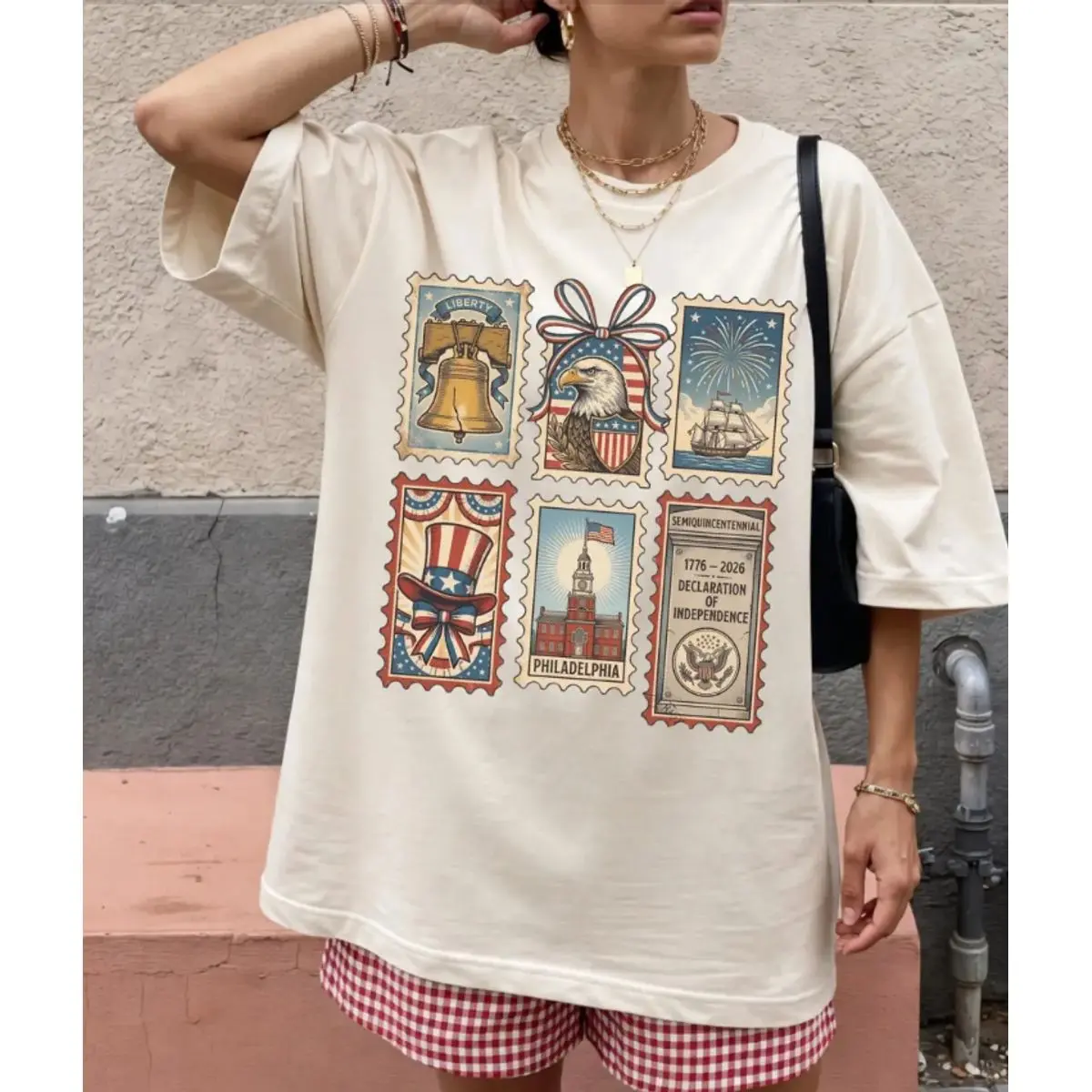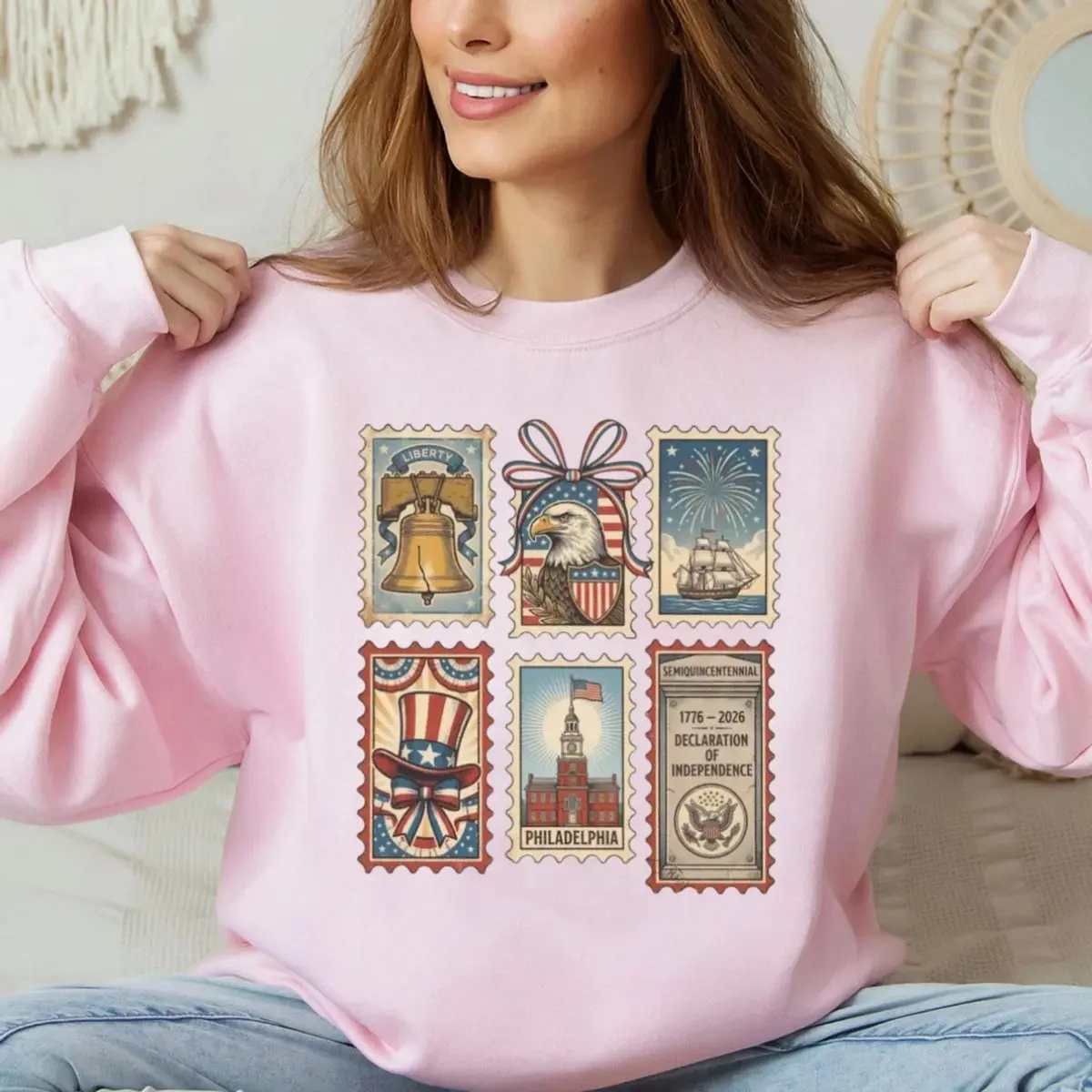 Usa 250th anniversary stamps t shirt, coquette 4th of july tee, america 1776 sweatshirt, patriotic freedom hoodie, unisex sweater pullover tee