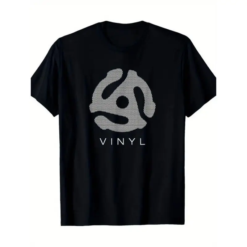 [Vinyl Record T-Shirt] Unisex 100% Cotton Vinyl Record Player Graphic T-Shirt | Machine Washable, Black Tee With White Abstract Design, Perfect Gift For Men, Women, Mom, Dad & Friends Fitted Crewneck