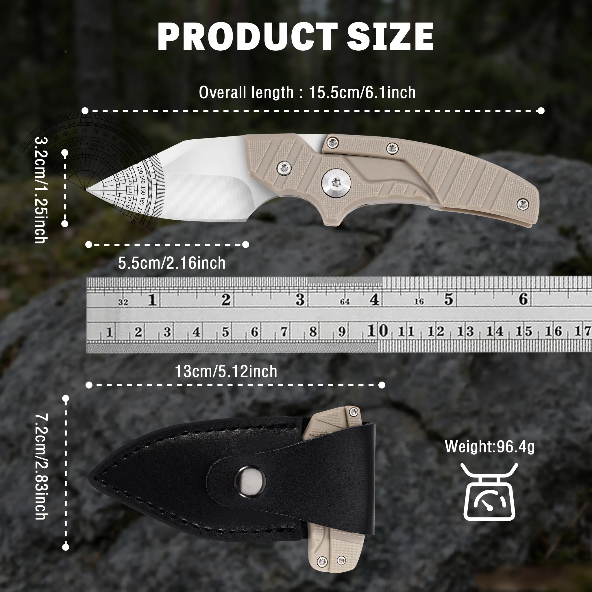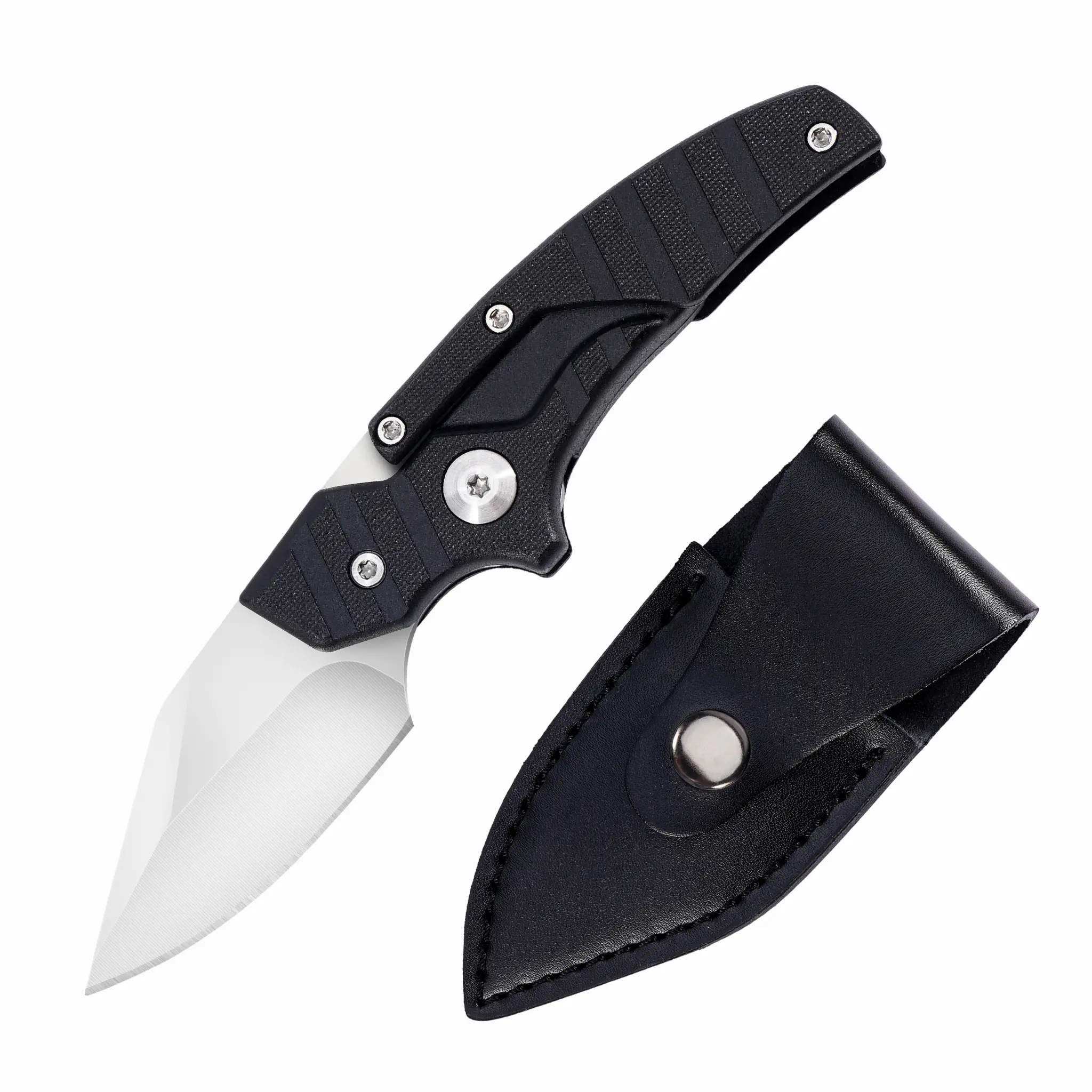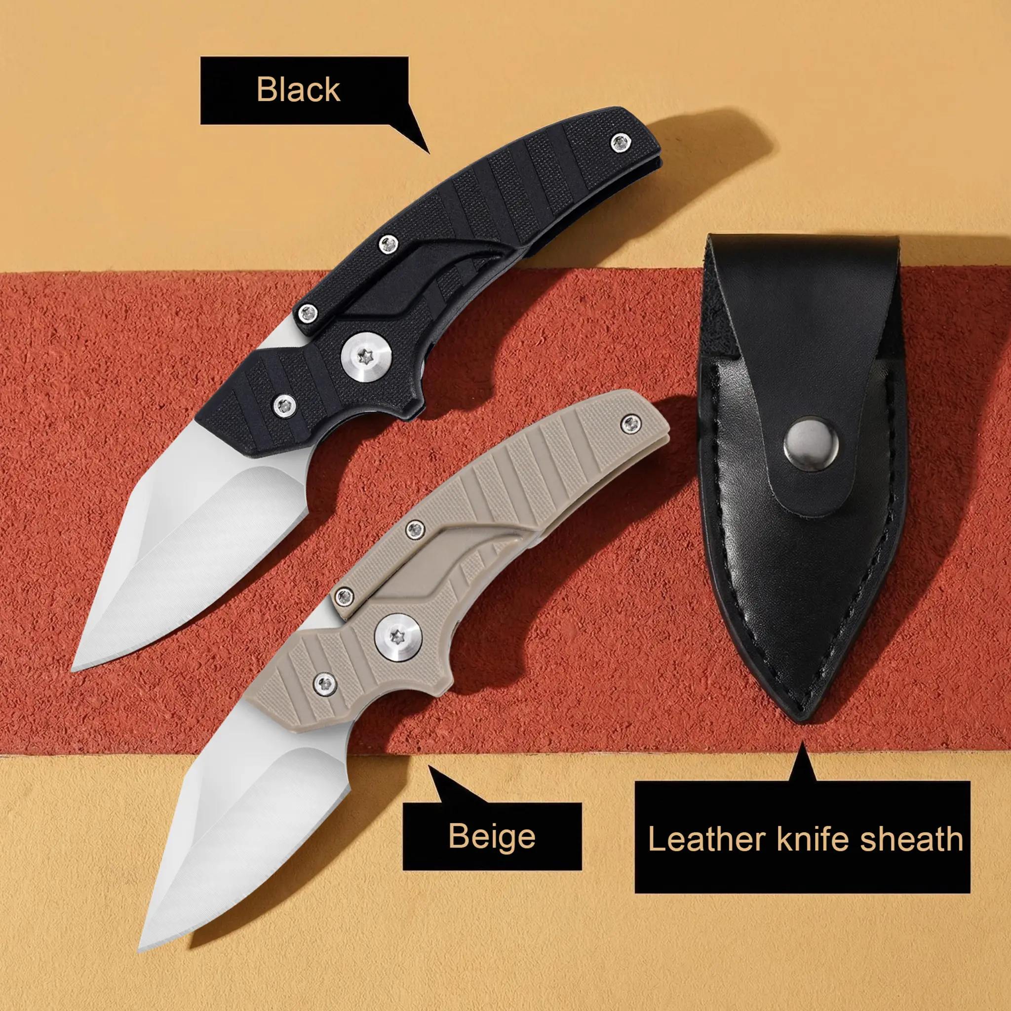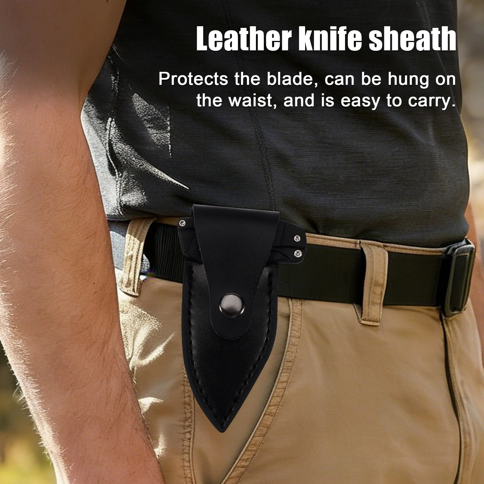 Portable EDC multifunctional tactical outdoor folding knife with two modes and a D2 blade; includes a leather sheath for everyday carry; an outdoor cutting tool designed specifically for climbing and fishing; a must-have for camping and hiking trips.