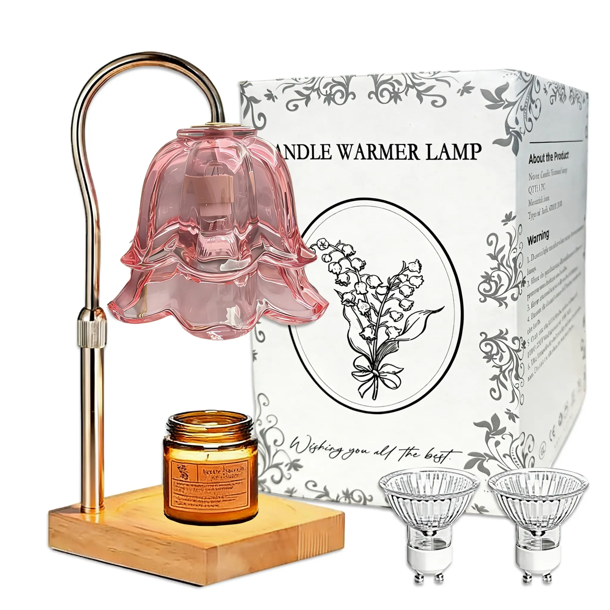 Height Adjustable Timer Candle Warmer, Gold Floral Lamp for Stylish Home Decor & Safe Scent Special Mom Present