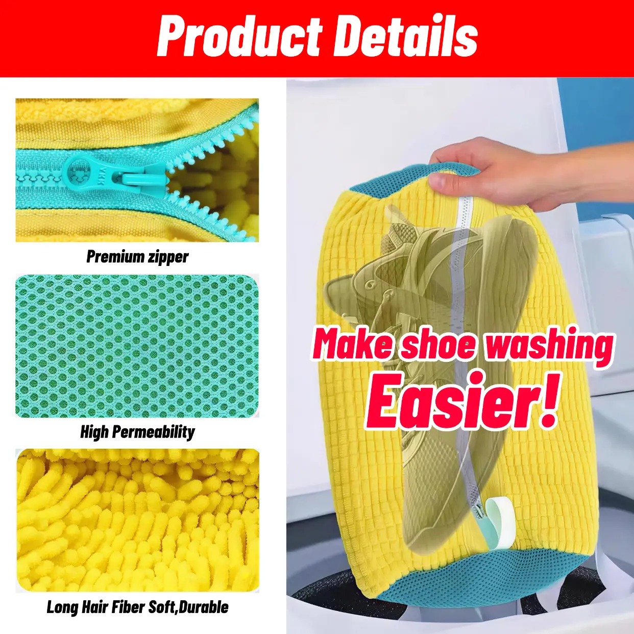 ·Durable Zipper: Ensures your shoes stay secure during washing.
