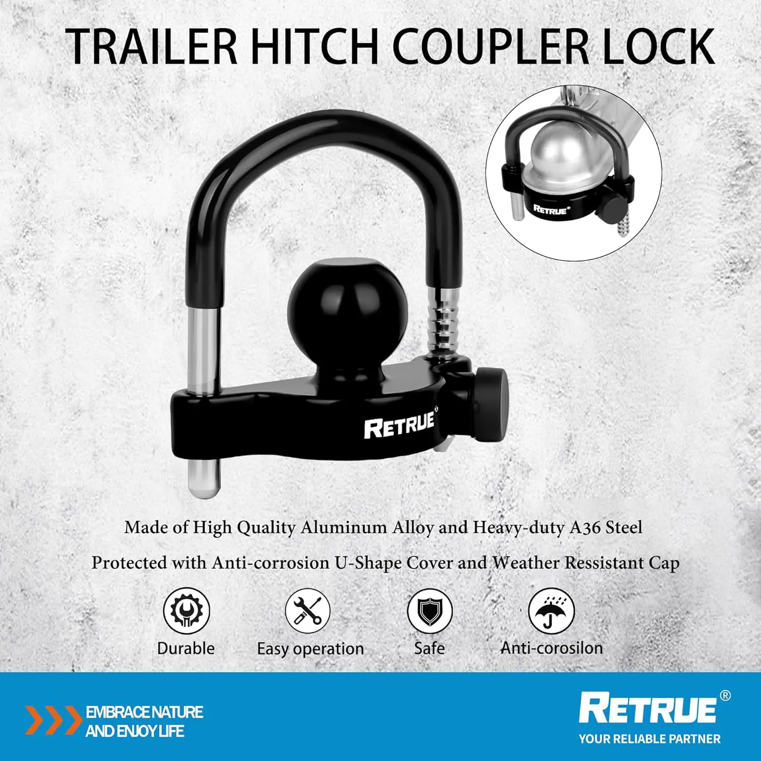 ·Universal Fit: Reture trailer coupler lock is designed adjustable with 11 locking positions and fits 1-7/8”, 2”, and 2-5/16"couplers. 2 Keys are included