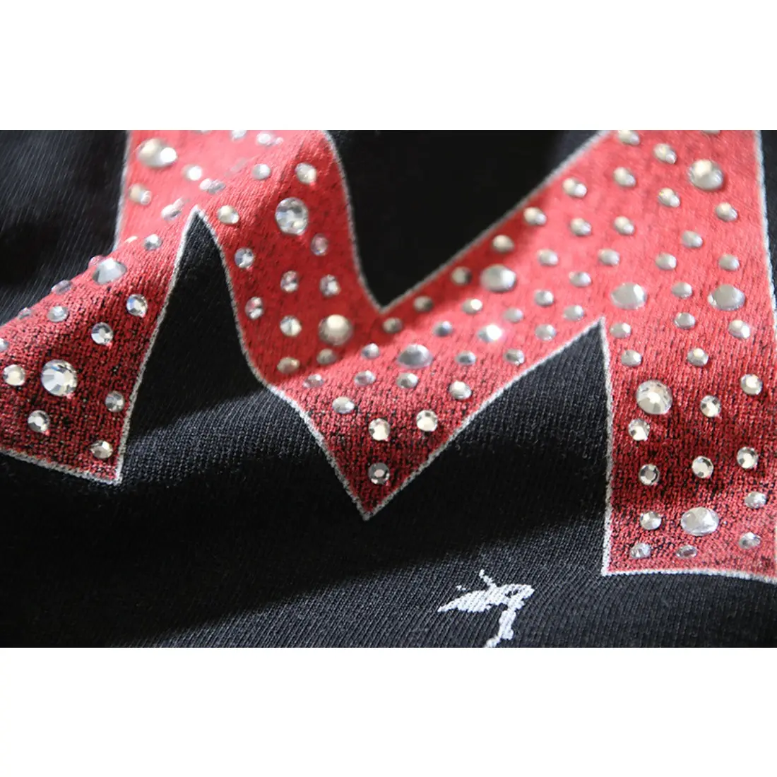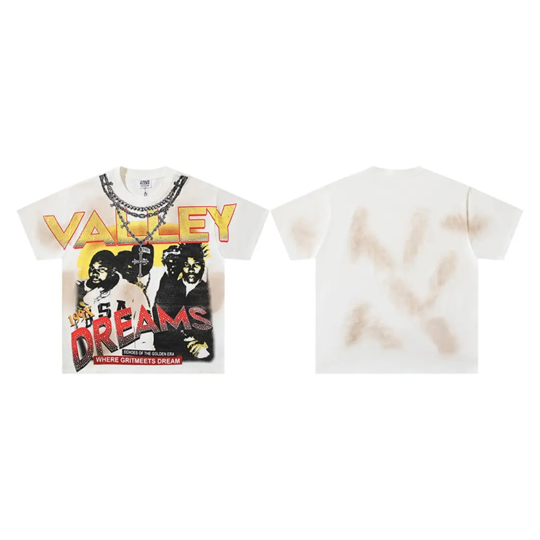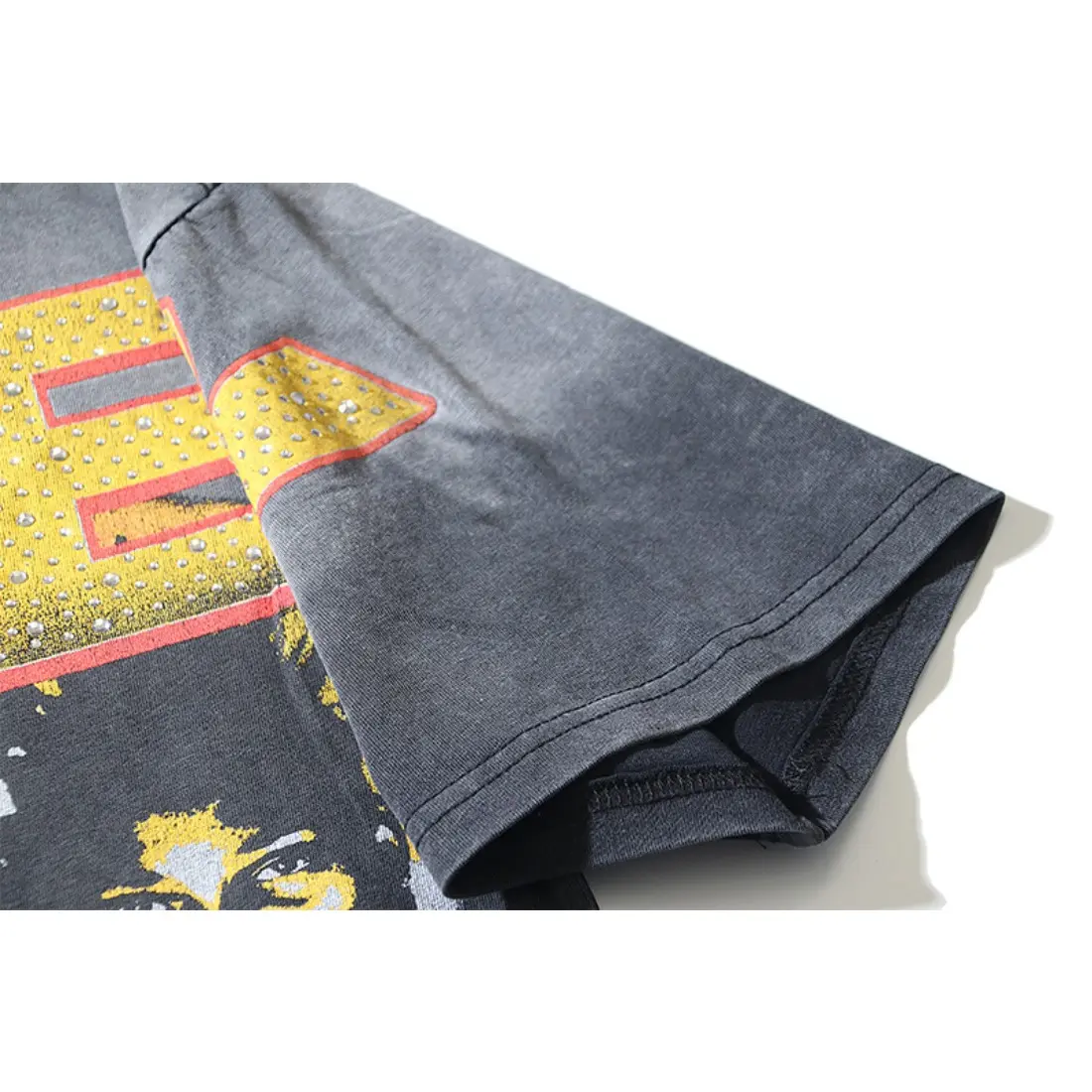 Vale Vintage Washed Streetwear T-Shirt, Bling Rhinestone Heat Transfer Print, Retro American High Street Singer Portrait & Letter Graphic, Y2K Hip Hop Summer Cotton Crew Neck Short Sleeve Tee