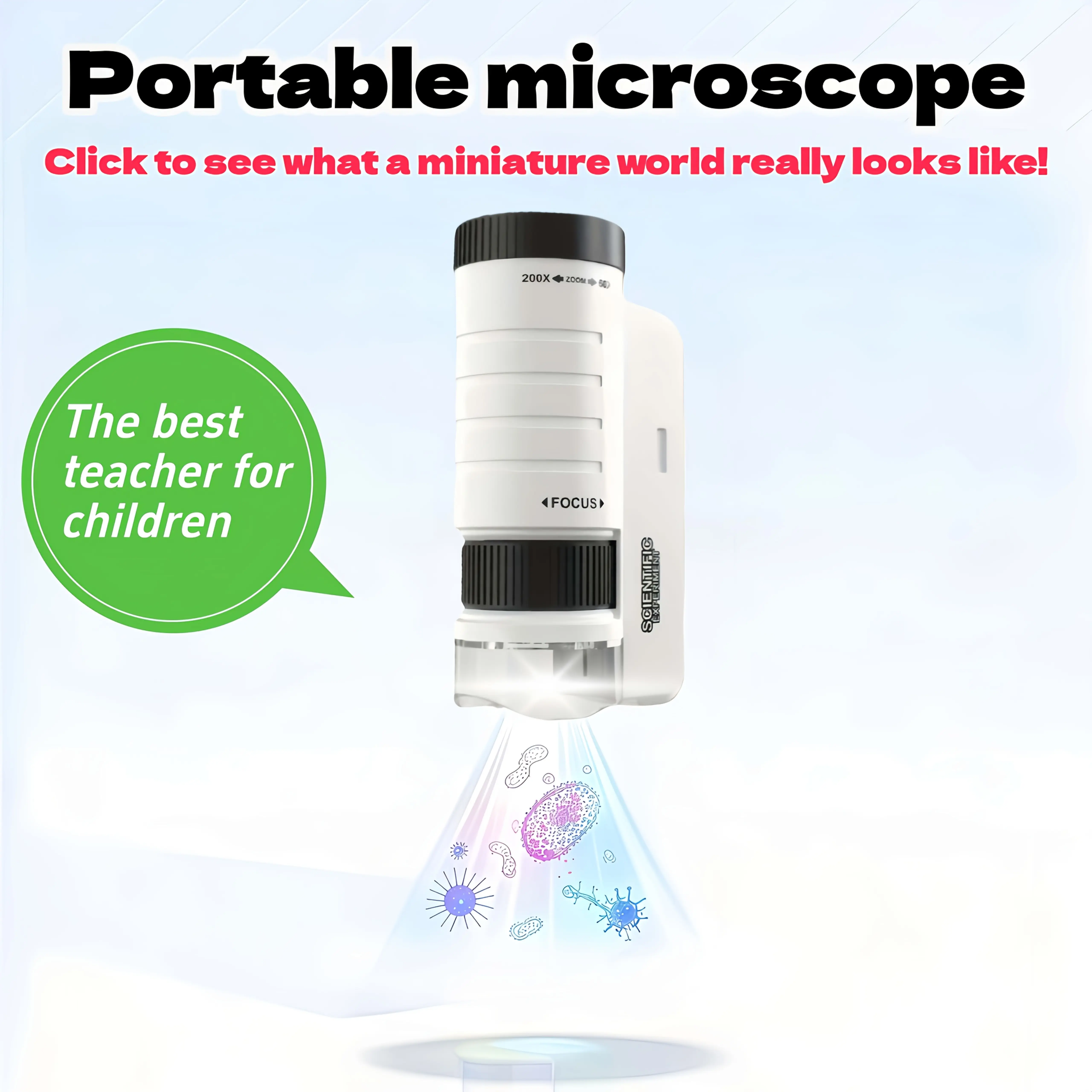 Observe insects, leaves, and more with this mini handheld microscope. Its portability makes it easy to carry and use anywhere. Perfect for educational purposes, it encourages hands-on learning. The microscope is a fun and engaging way to explore the microscopic world.