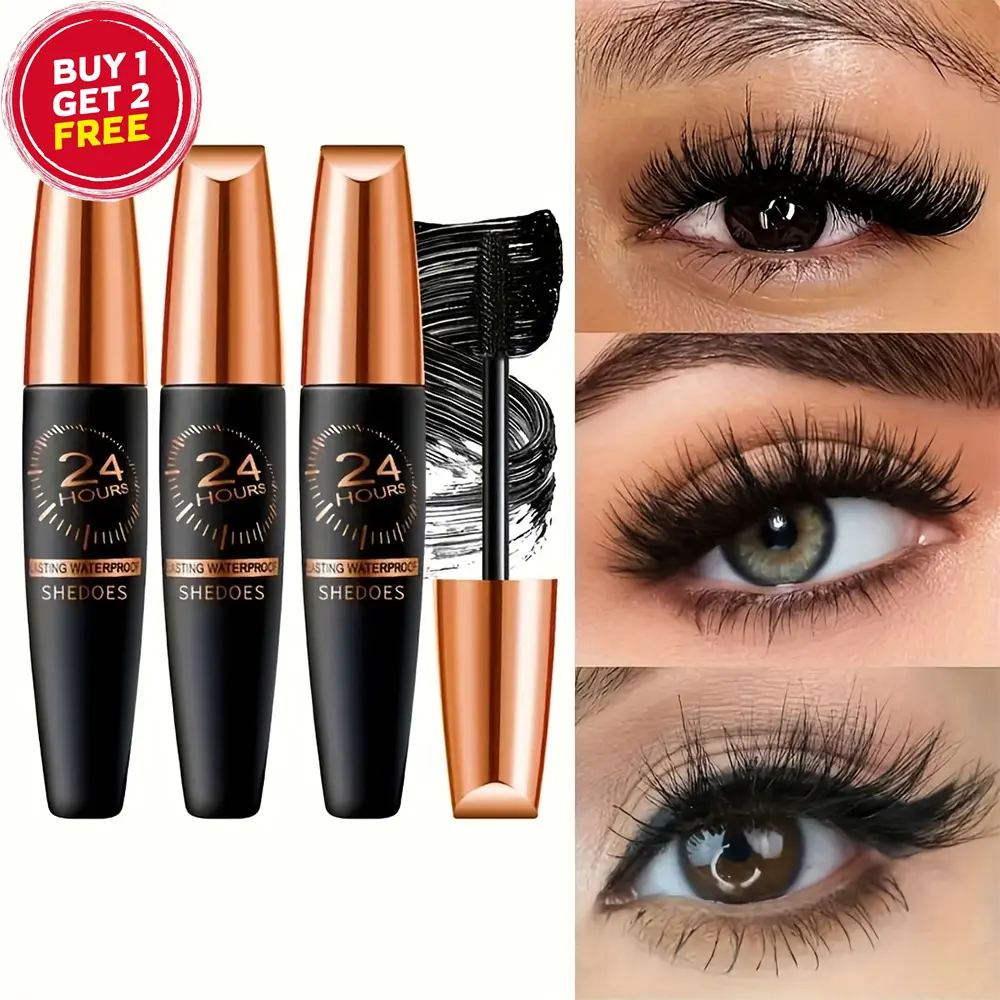 3PCS Shedoes 24-Hour Waterproof Mascara - 8D Lengthening & Volumizing, Smudge-Proof Black with Plant Squalane for All Light Beige Types, Ethically Made & Hypoallergenic, Mascara Waterproof with Plant Squalane