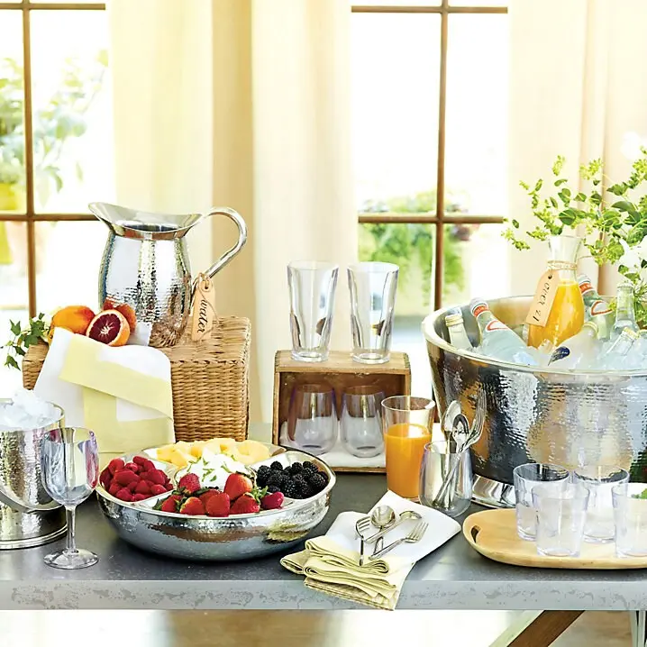 Cool it down and dress it up for outdoor entertaining with our Double Walled Pitcher. Double walls of stainless steel hold their chill without sweating on your tabletop or serving area. Generous handle makes it easy to pass and pour.