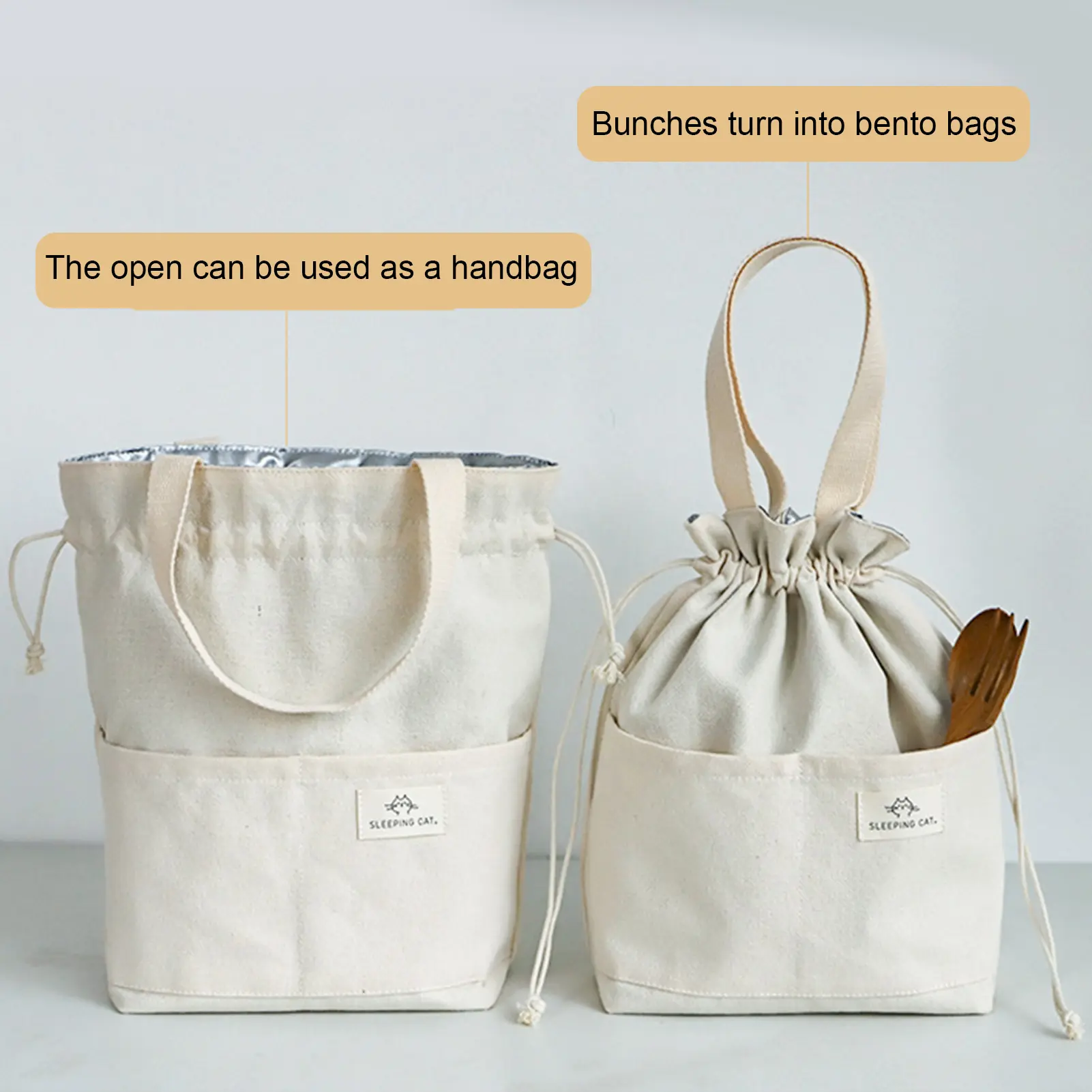 Explorinox Bento Bag Large Capacity Drawstring Design Waterproof Aluminum Foil Liner Japanese Style Lunch Box Insulated Pouch Daily Use 22cm x 11cm x 28cm