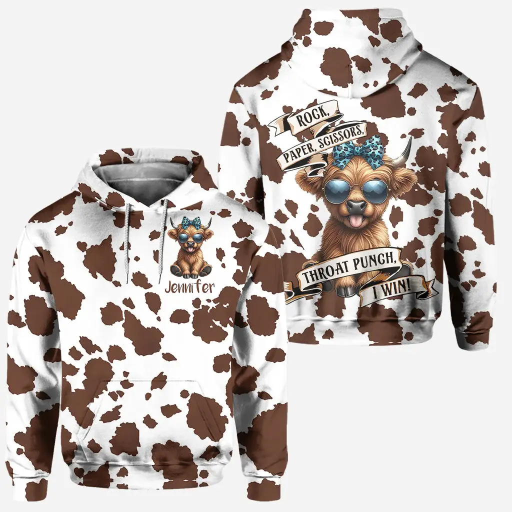 Rock Paper Scissors Highland Cow Personalized Hoodie & Leggings Set – Custom Name Funny Farm Animal Sweatshirt with High Waist Leggings, Cute Country Outfit