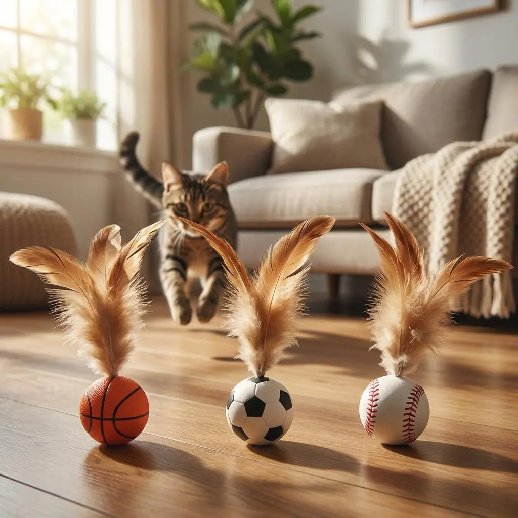 Fun Sports DesignsBasketball, soccer, and baseball styles combined with soft natural feathers create a lifelike prey experience-perfect for chasing, pouncing, and biting.