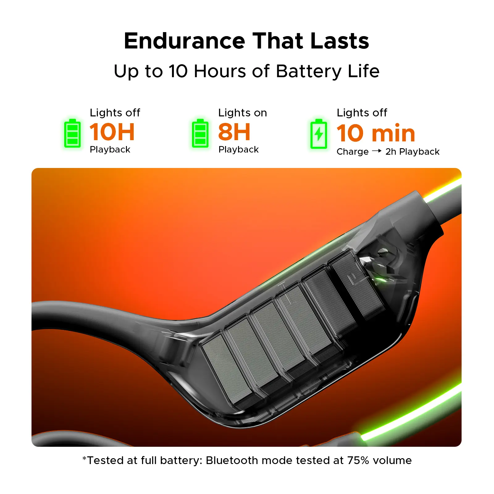 BoneBeat Run Ray IP66 Bone Conduction Headphones for Running, LED Safety Light, Open-ear design, Up to 10 Hours Playtime, Bluetooth 6.0 with Dual-Device Connectio