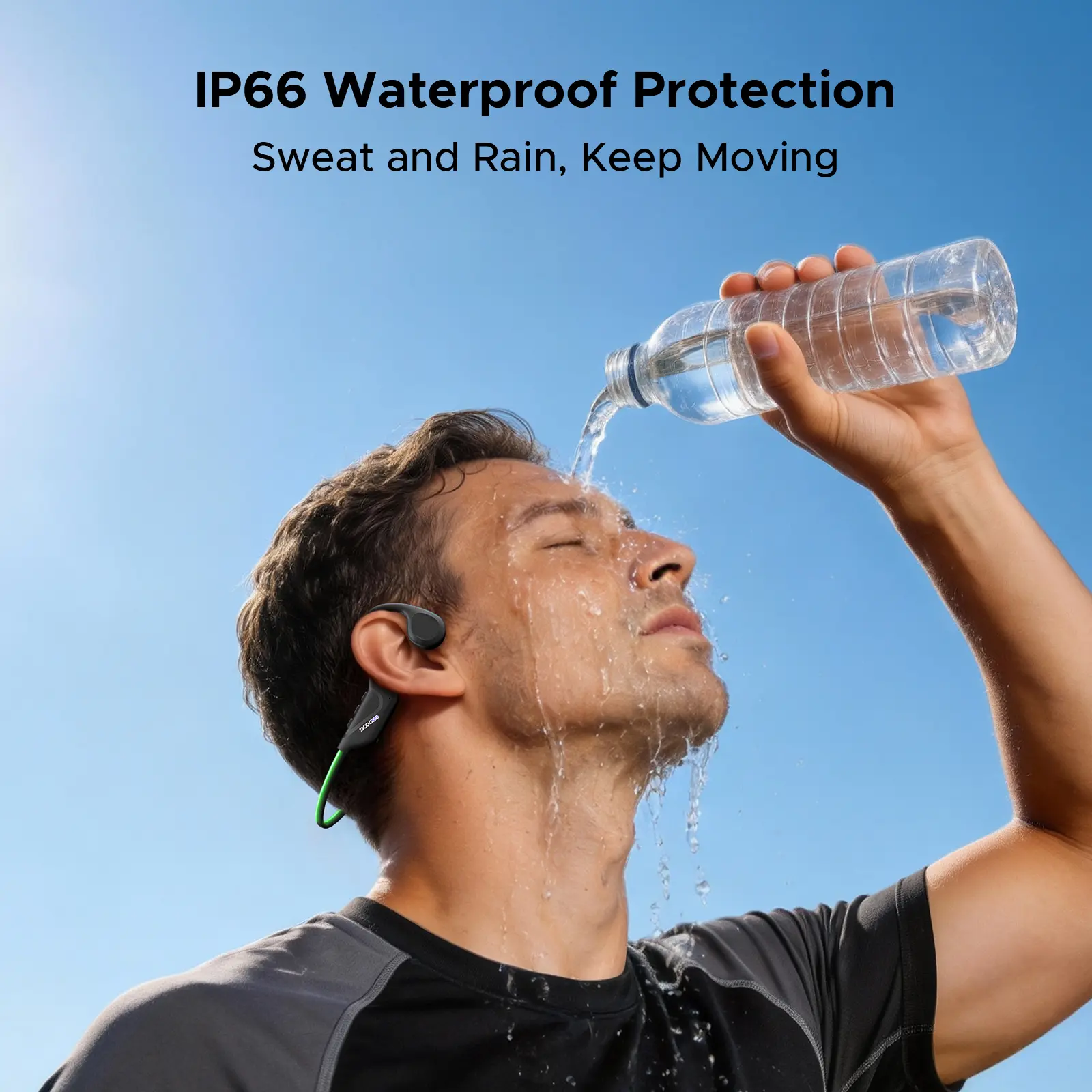 BoneBeat Run IP66 waterproof bone conduction headphones, open-ear fit for comfort and awareness, 10 hours of playtime, Lightweight and secure