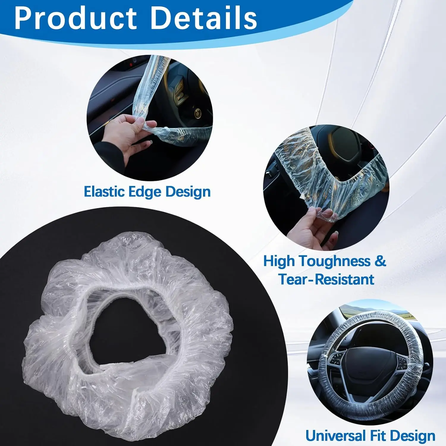 200-Pack Value: Get 200pcs disposable steering wheel covers in one pack! Enough for daily use, shop restocks, or sharing with friends or family. Great for both professional shops and personal vehicles, unbeatable value for long-term protection