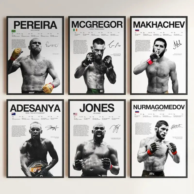 UFC Fighter Poster Set, MMA Legends Wall Art Aesthetic Print, Jon Jones McGregor Khabib Adesanya Pereira Decor, Gift for Fight Fans, Cuadro UFC No Framed