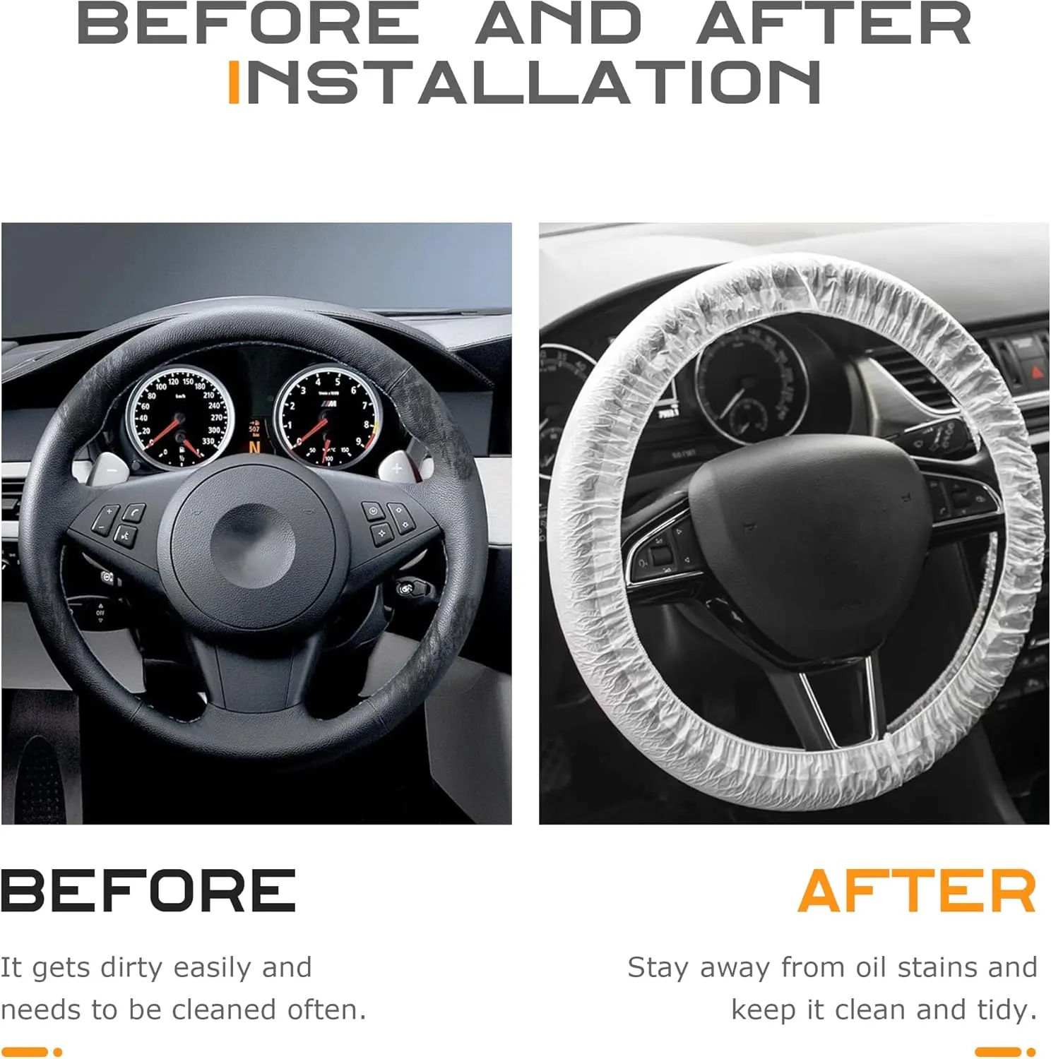 [Widely Applicable]: Disposable steering wheel cover is a must-have car part, suitable for car repair, body repair shop and car interior protection, effectively dustproof and waterproof. Suitable for most sedans, SUVs and light pickups, etc.