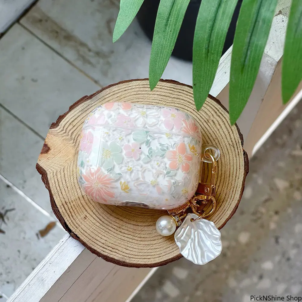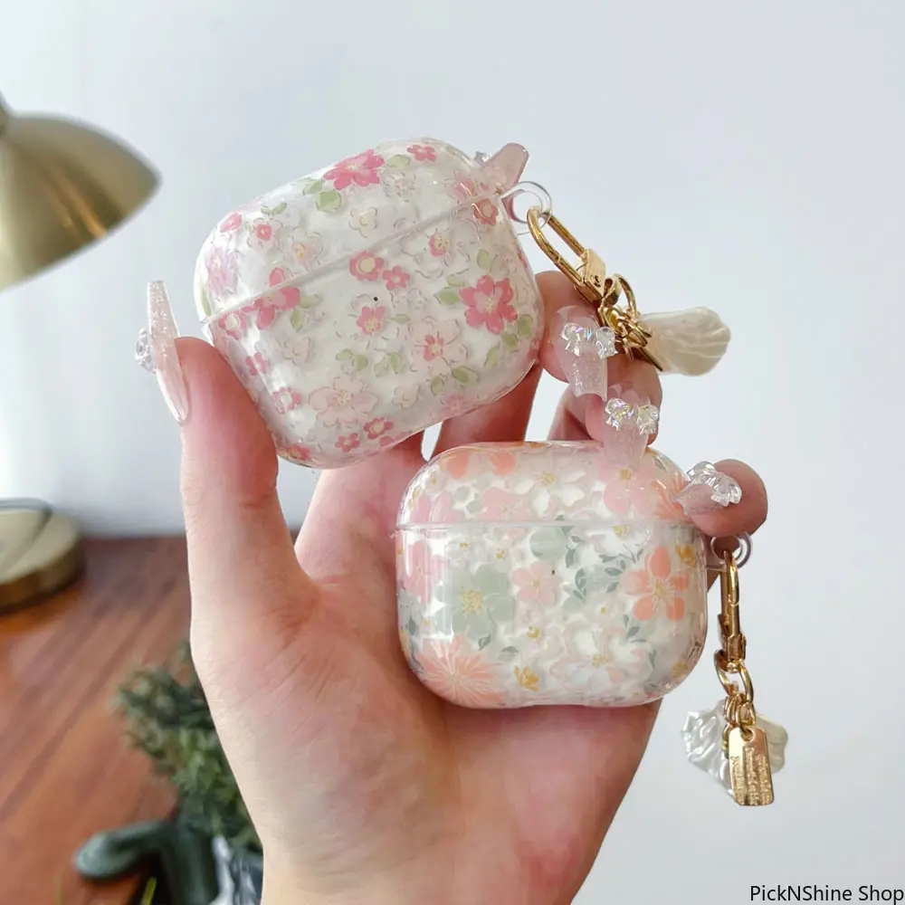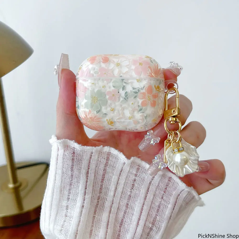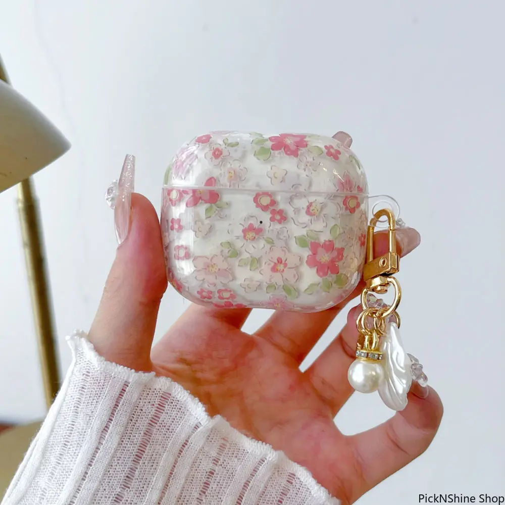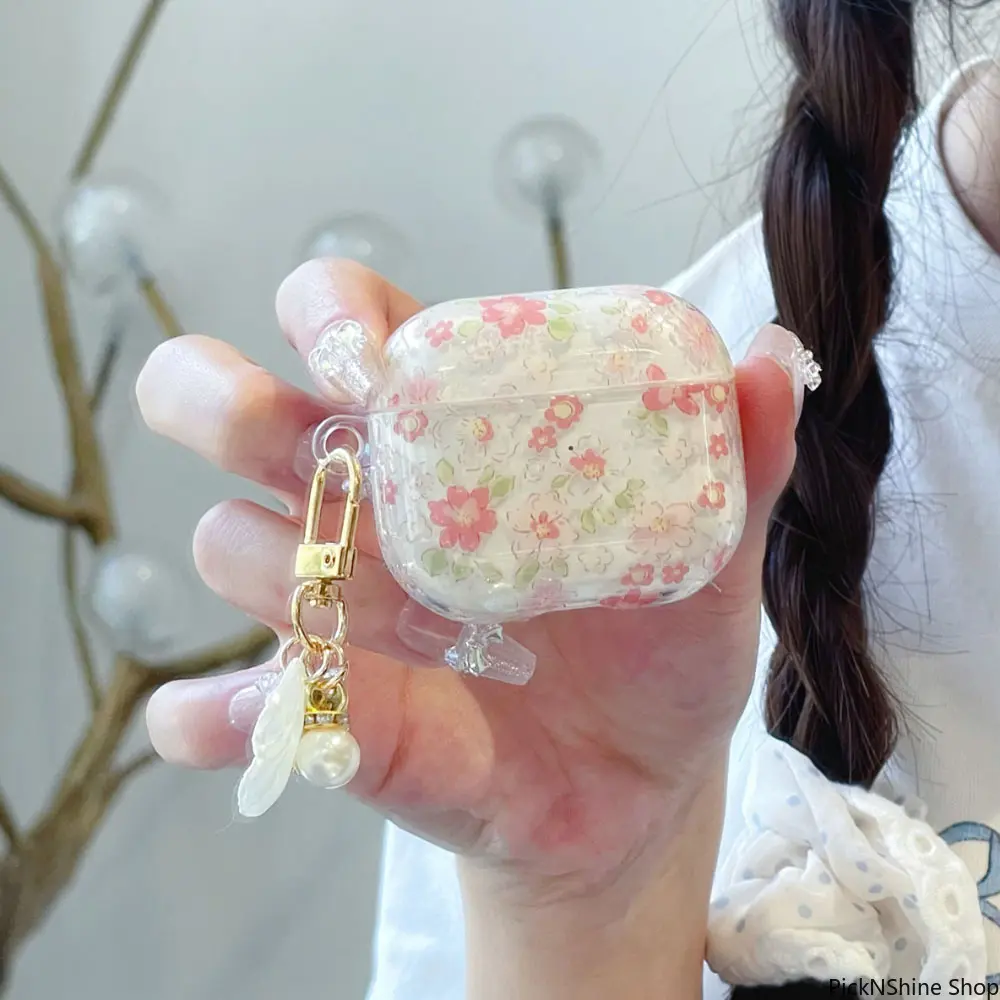Soft Silicone Earphone Case With Cute Clear Pink Flower Pendant, Protective Cover Compatible With AirPods Series Models, Flexible Anti-Drop Shell For Wireless Charging And Daily Carrying