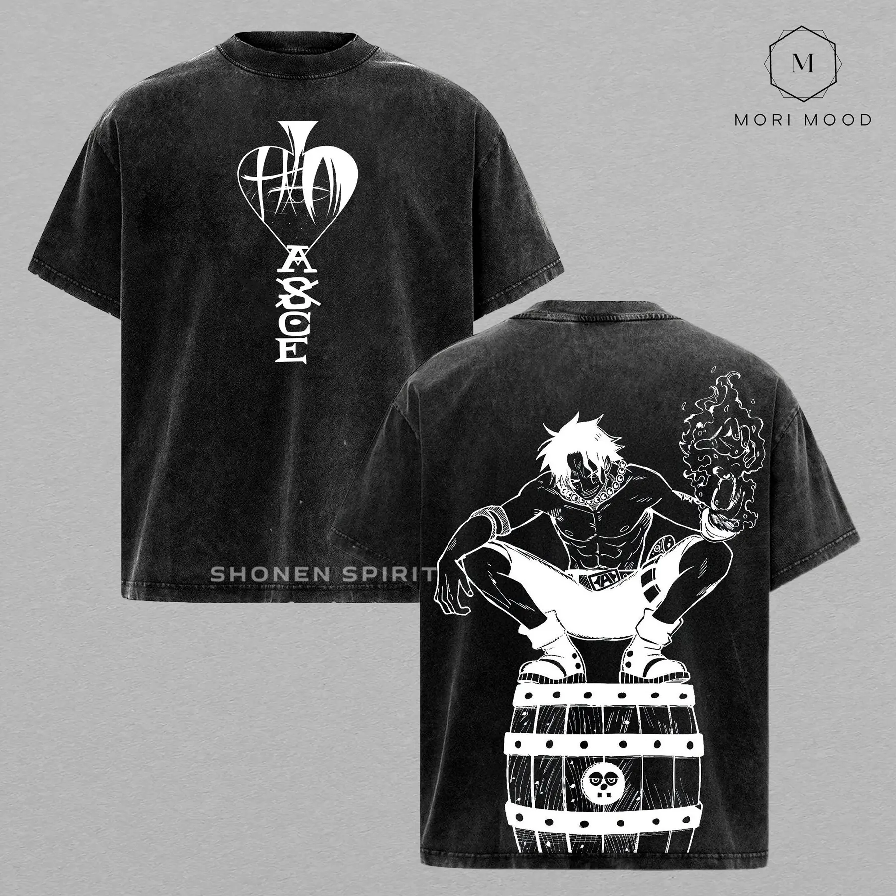 Portgas D. Ace One Piece Shirt | Fire Fist Anime Graphic Tee, Pirate Flame Power Design, Vintage Washed Unisex Streetwear For One Piece Fans & Anime Street Style