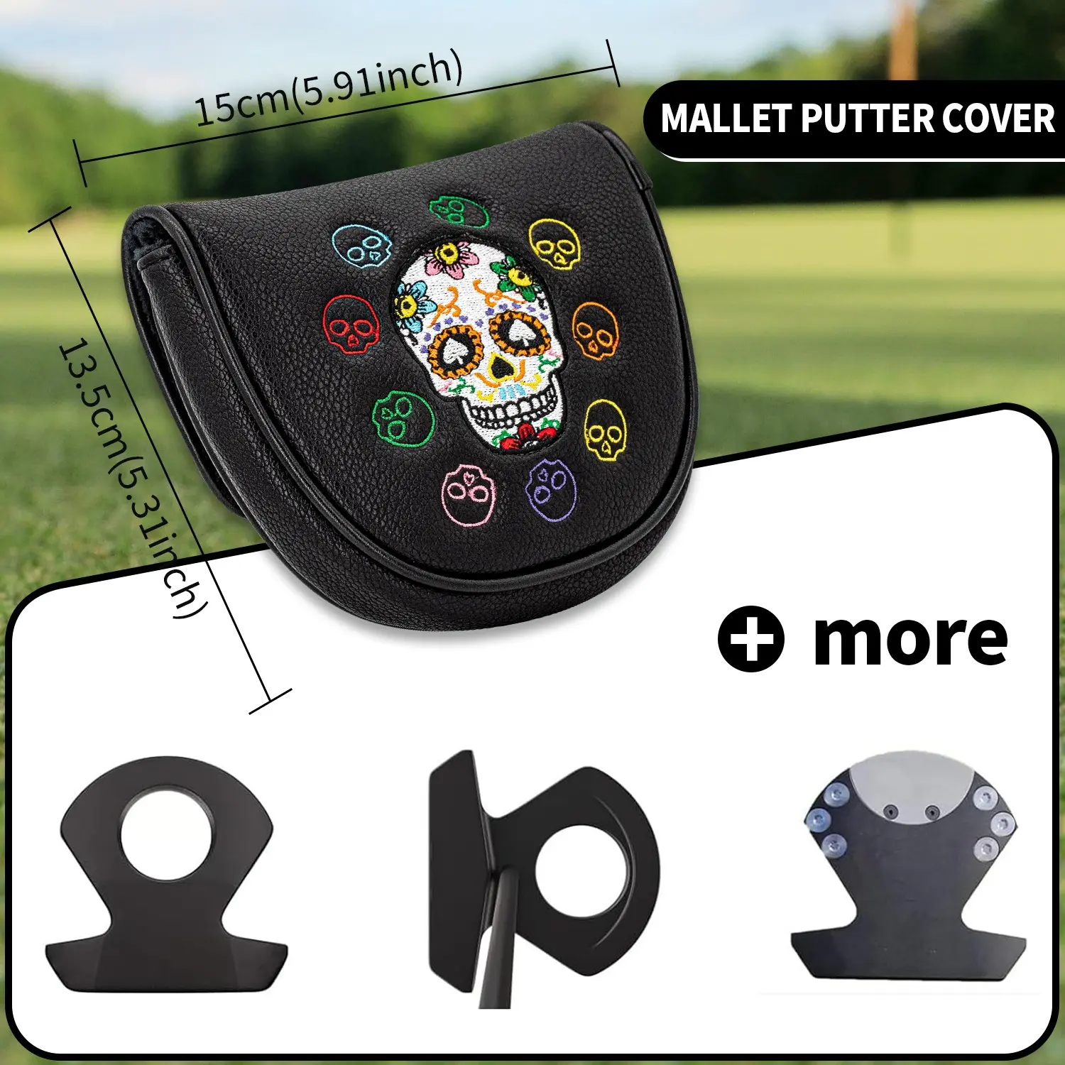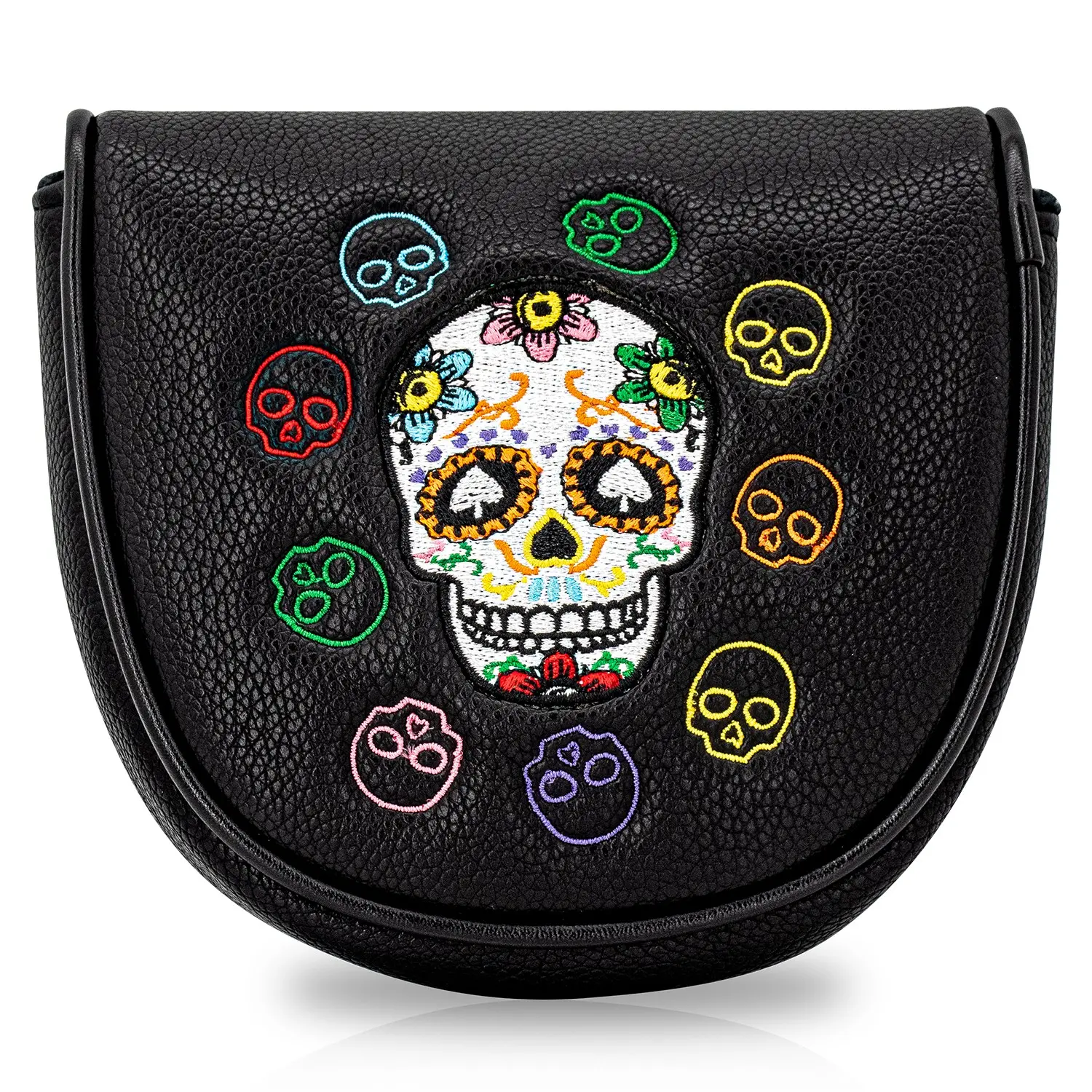 Comedy Skull Golf Putter Head Cover, Half-Moon Mallet Protector, Durable Soft Lining, Unique Spade Eye Design, Ideal Gift for Golf Fans