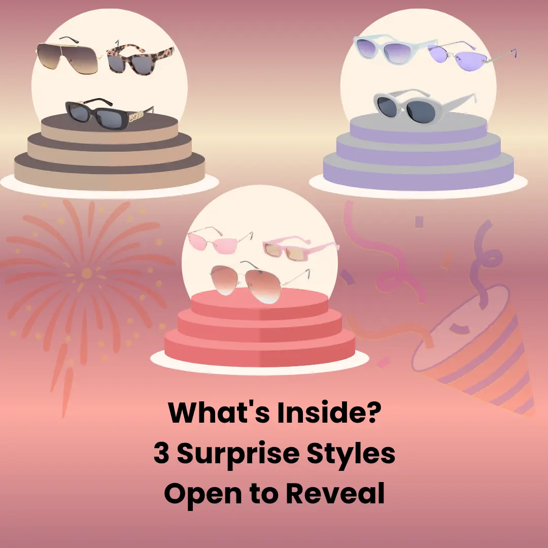 Unbox the perfect summer vibe with our Sunglasses Mystery Box! Each box contains 3 random sunglass styles from our collection of 15 unique designs. Whether you're into classic aviators, trendy cat-eye, or bold oversized frames, a surprise is waiting for you.