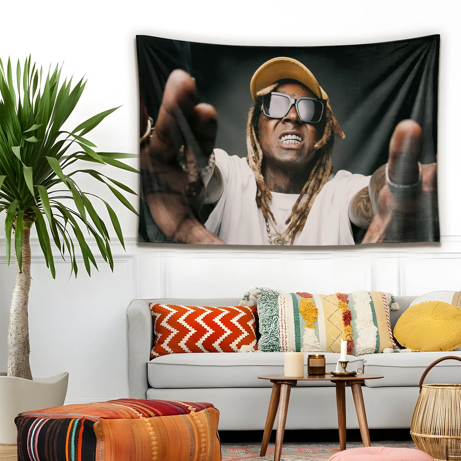 5. L. Wayneee Tapestry, Vintage Hip-Hop Legend Wall Hanging Decor, Retro Rap Music Art Banner, Bedroom Studio Wall Art, Gift for Fans