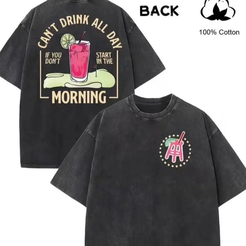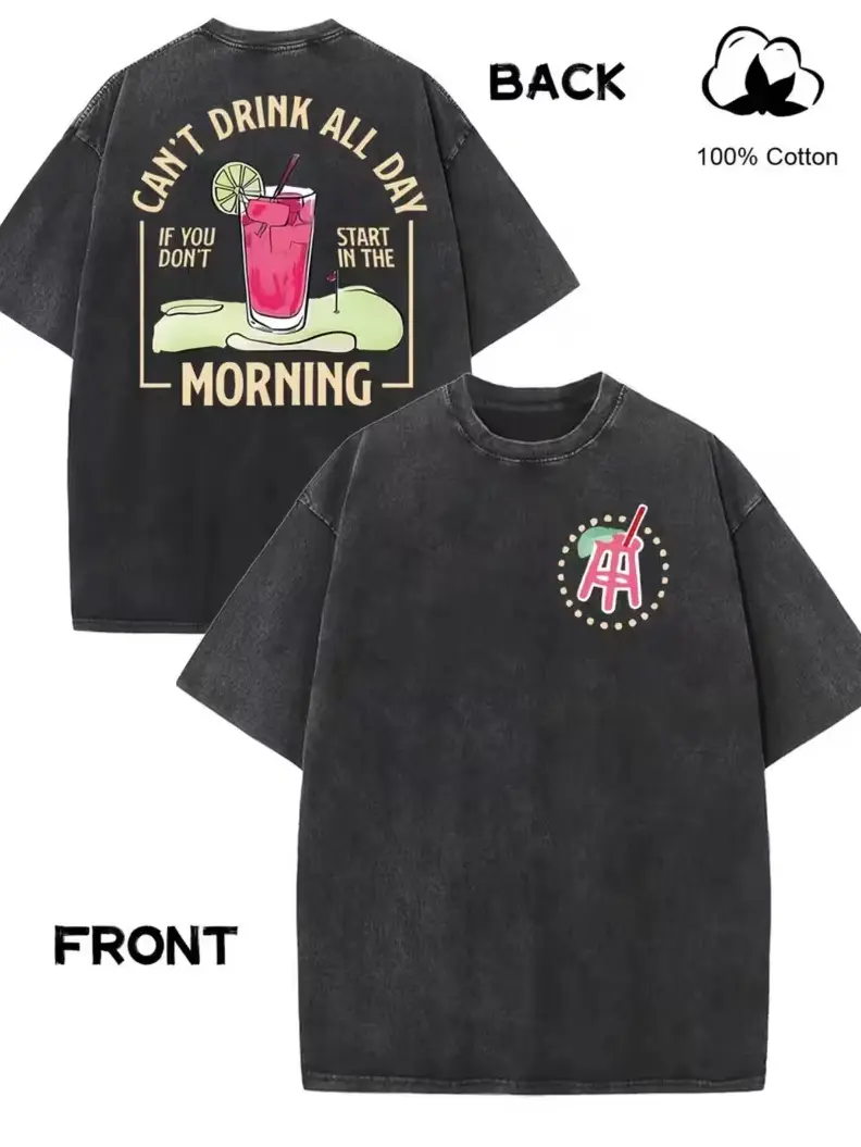 If you don't start in the morning, don't expect to drink all day! Golf cocktail graphic T-shirt, 100% pure cotton fun golf drinking retro washed T-shirt, unisex casual golf course party top, a gift for golfers and beer lovers #retrowashedcottonTshirt