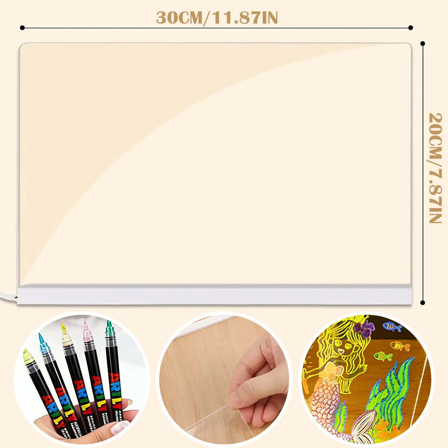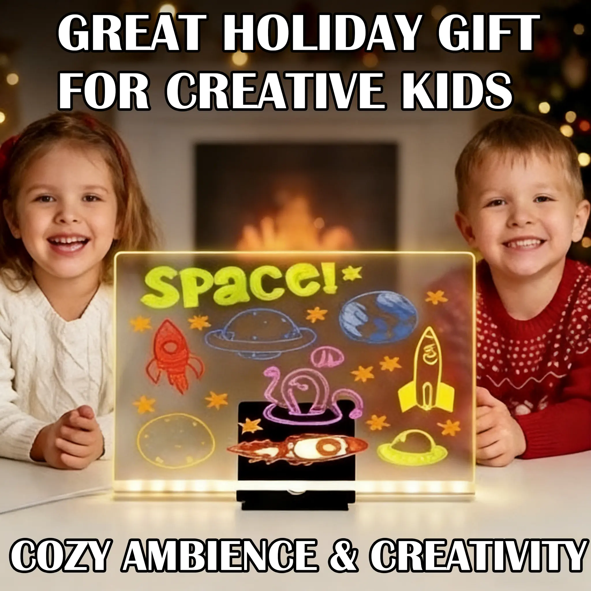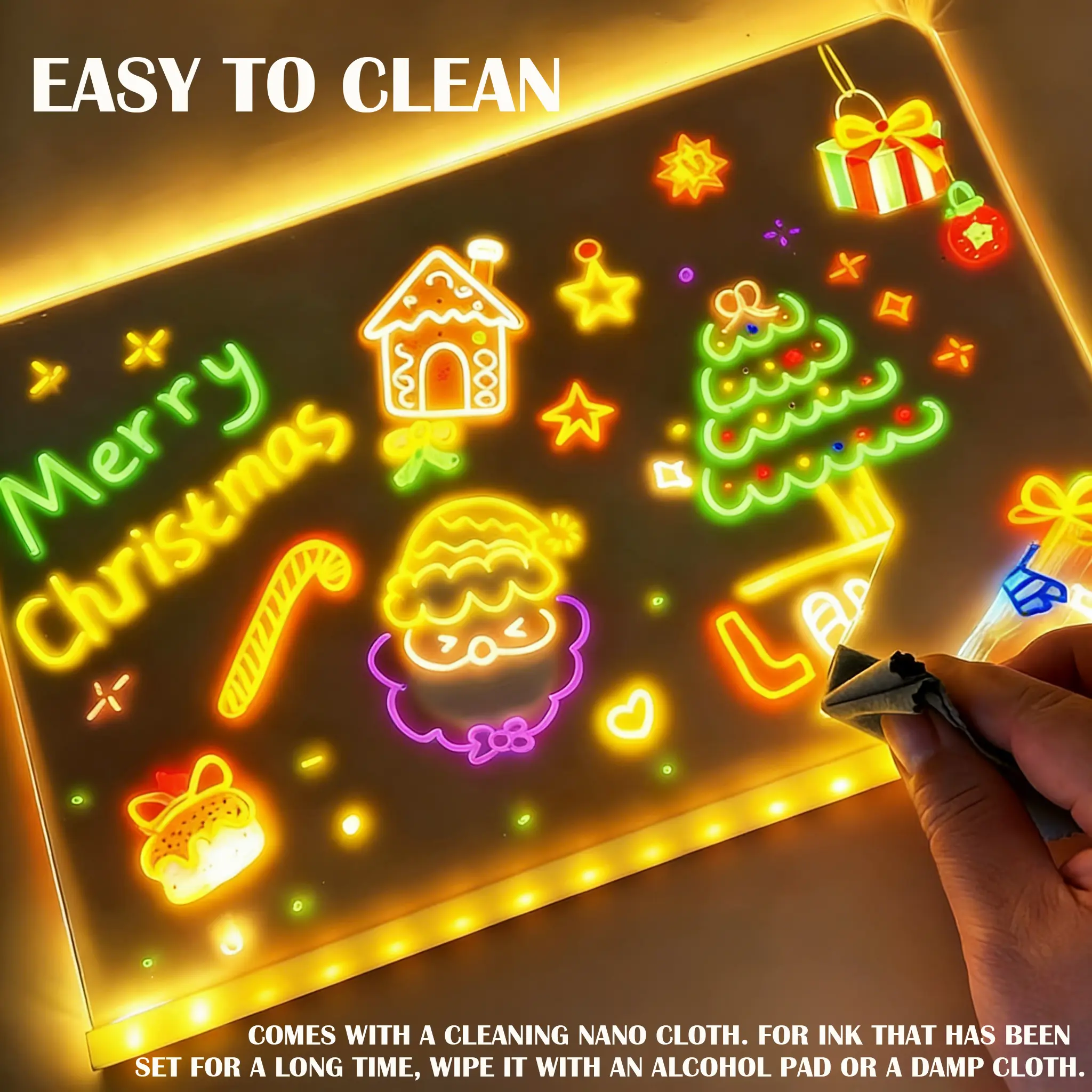 LED Note Board with Acrylic markers, Includes Adapter, 12"x8" Led Drawing Board for Kids, Light Up Dry Erase Boards with 7 Markers, Soft Cloth, Hanging Chain, Holiday Trend Gift