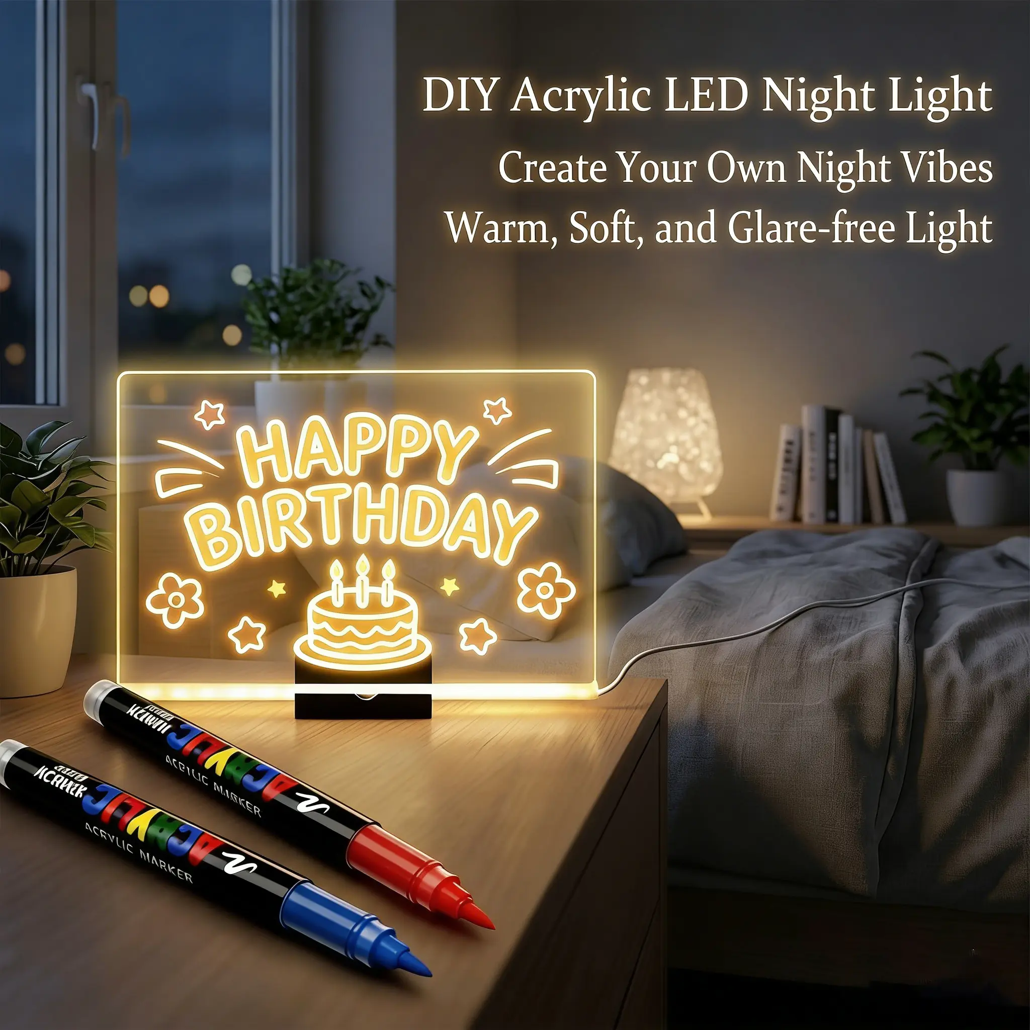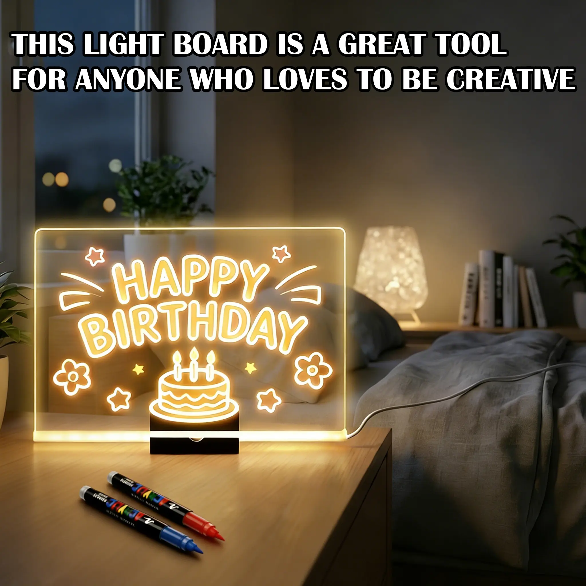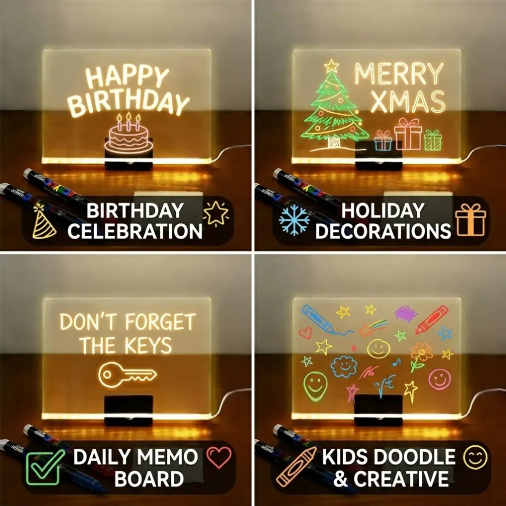 LED Note Board with Acrylic markers, Includes Adapter, 12"x8" Led Drawing Board for Kids, Light Up Dry Erase Boards with 7 Markers, Soft Cloth, Hanging Chain, Holiday Trend Gift