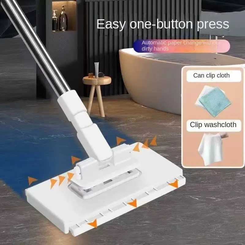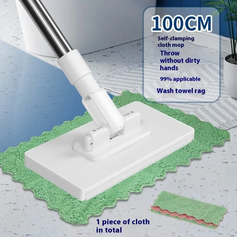 This self-clamping mop—just clip old towels or face cloths, release with one button after mopping, and toss the dirty cloth directly; no hands needed at any point!