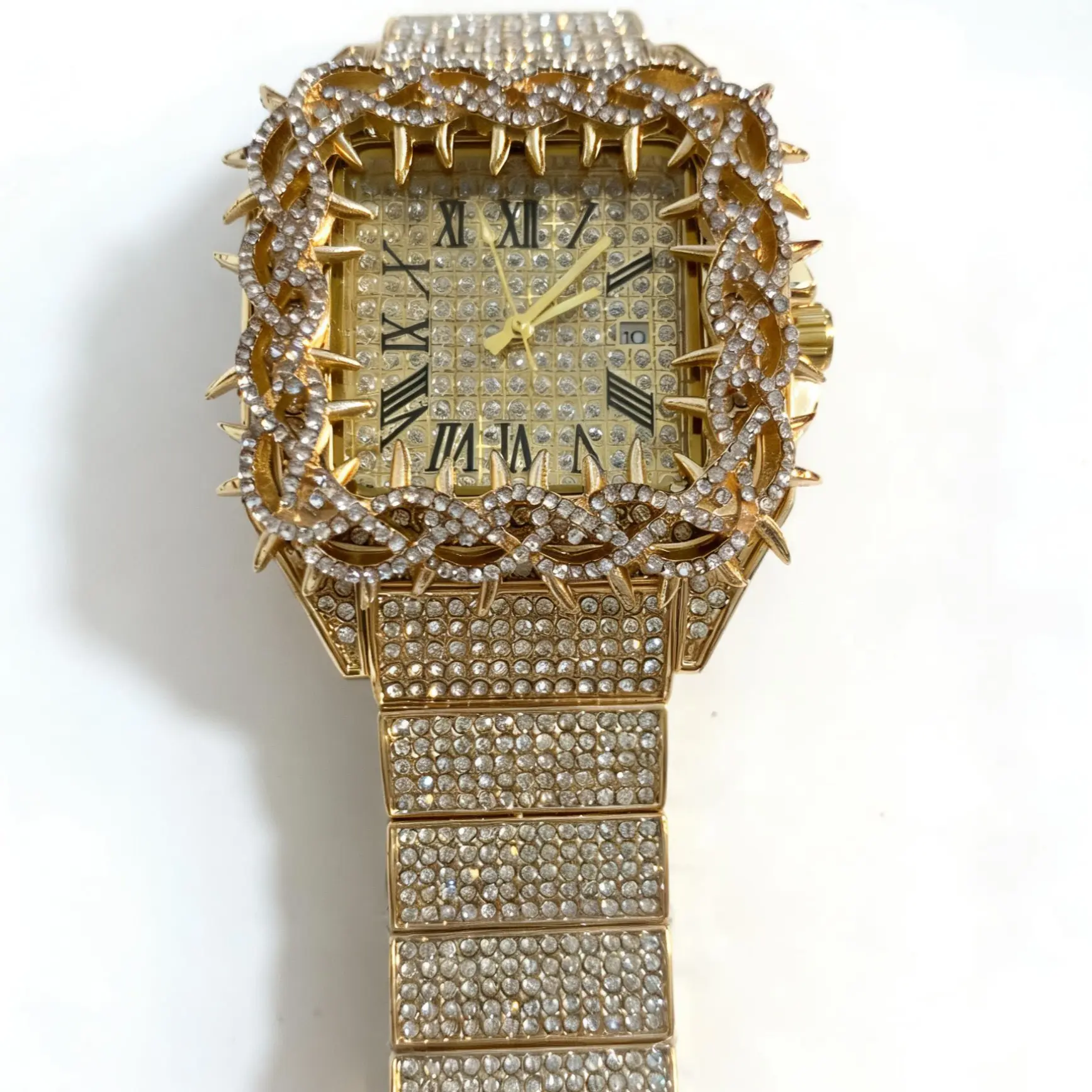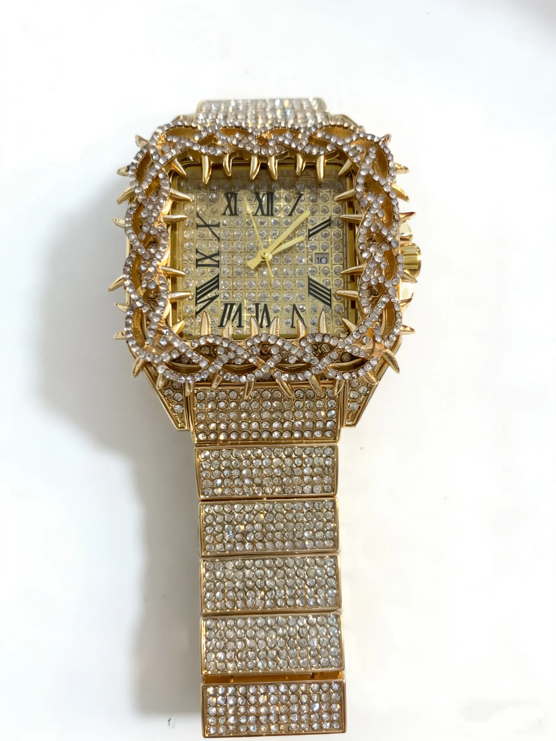 A fashionable watch made of natural gemstones and alloy, with adjustable features and surrounded by thorns.