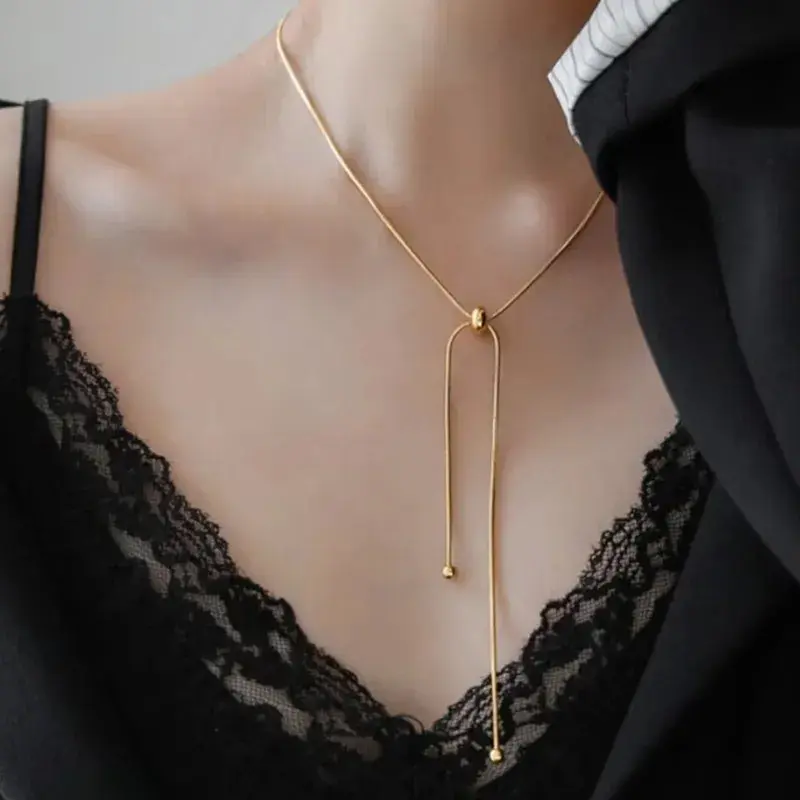 Personalized Snake Chain Adjustable Y Necklace for Woman Clavicle Pendant Stainless Steel Necklace Women's Holiday Gift Jewelry