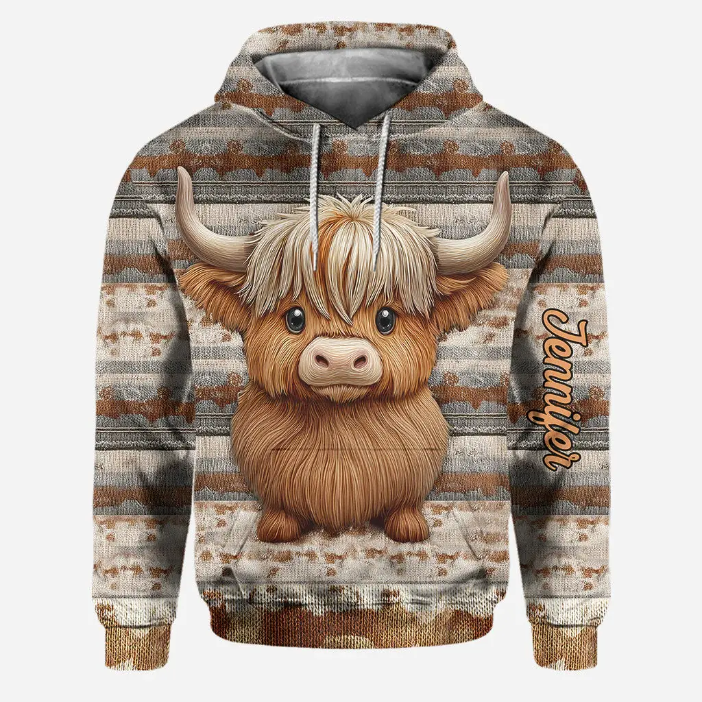 Cute Highland Cow Personalized Hoodie & Leggings Set – Custom Name Farm Animal Sweatshirt with High Waist Leggings, Adorable Country Girl Outfit