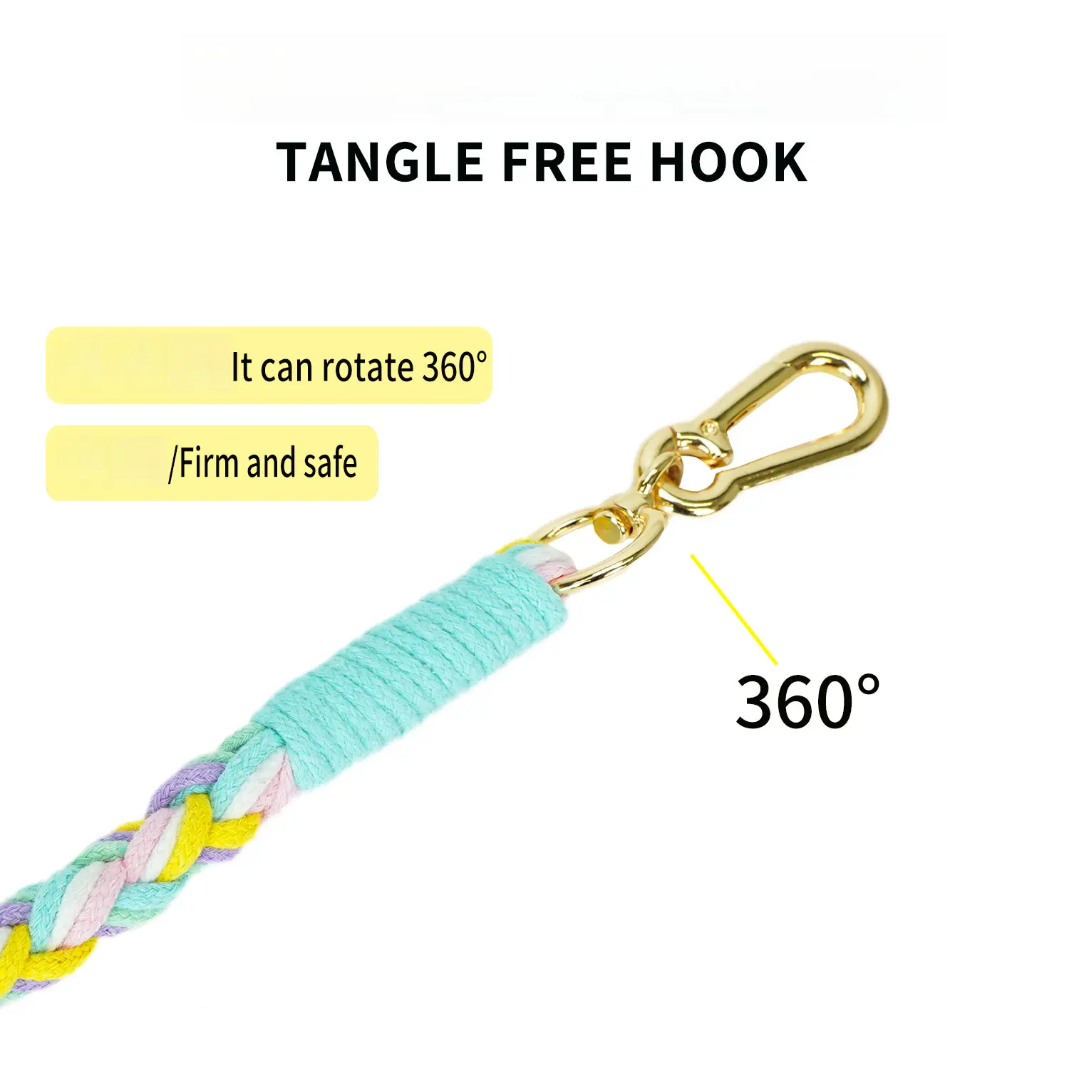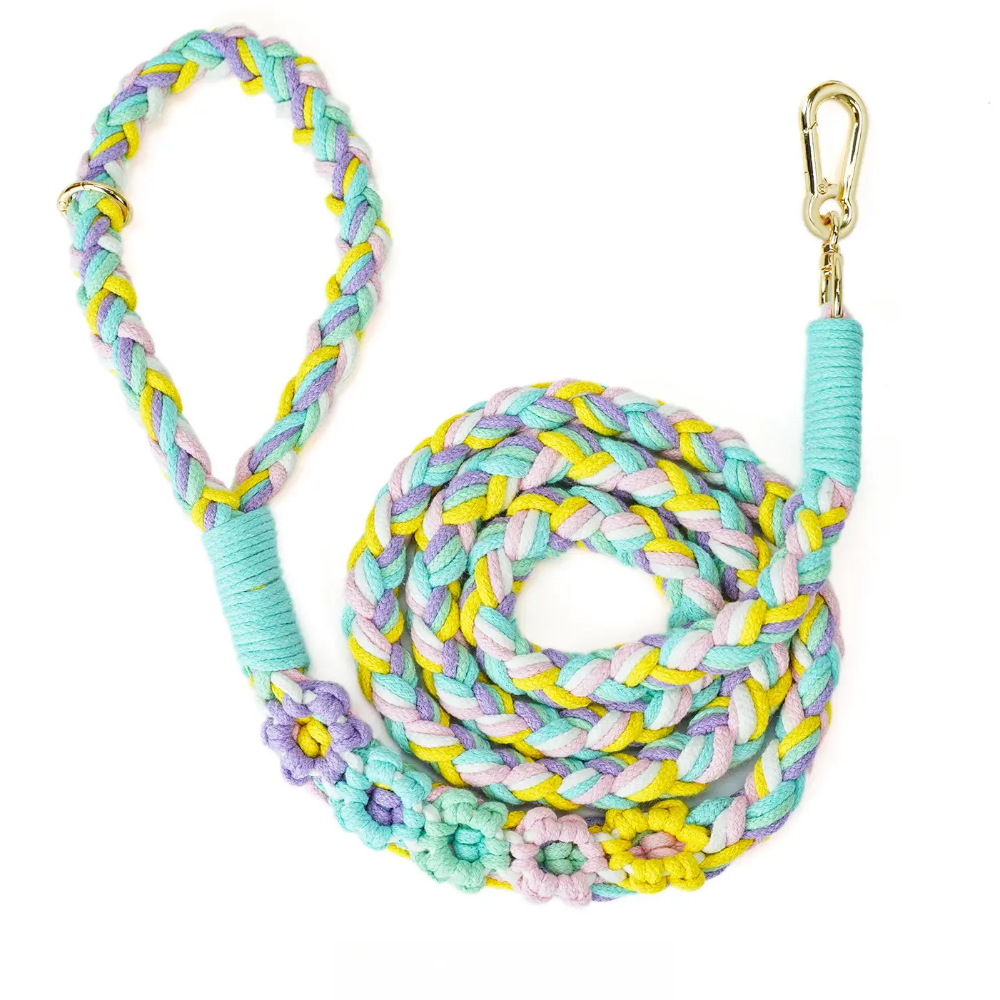 ·DURABLE& HANDWOVEN STRENGTH: Made from six tightly braided cotton ropes, this 0.71-inch diameter leash is built for durability and wear resistance.Perfect for all-weather use, it minimizes pulling strain for a more comfortable walking experience.