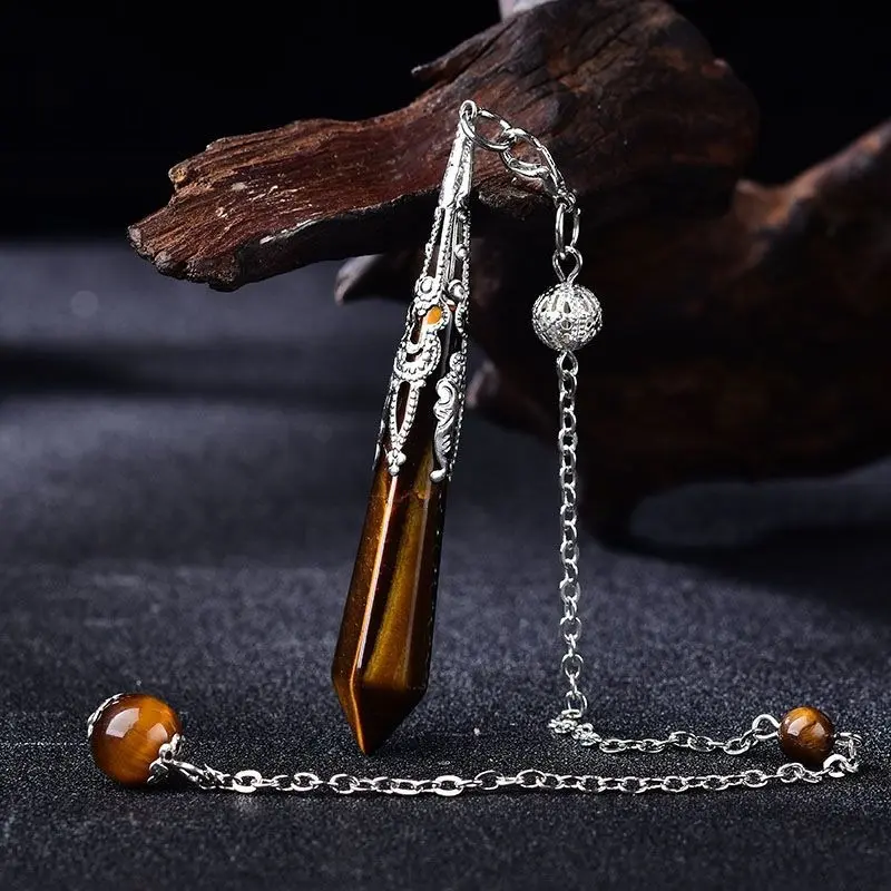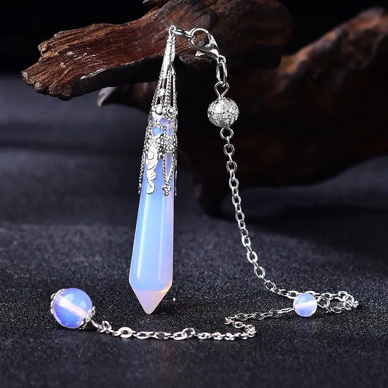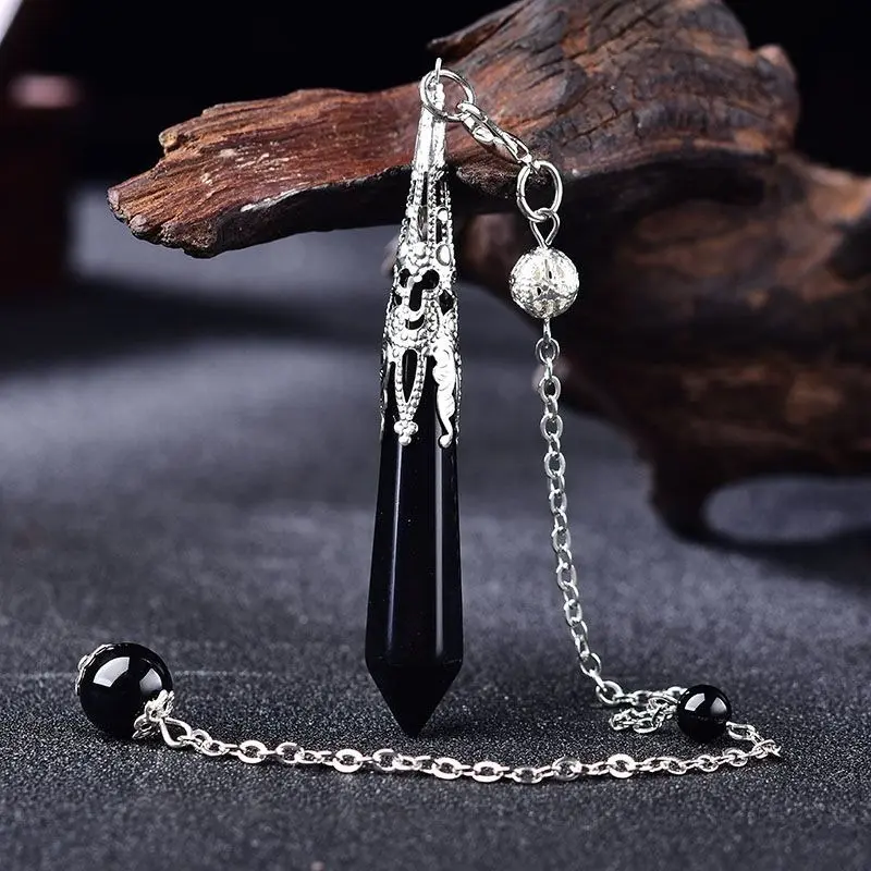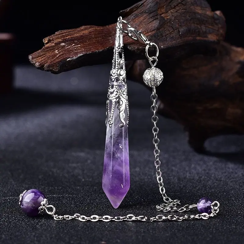 Style: Hexagonal pointed amethyst pendulum, wrapped in silver wire, crystal bead chain