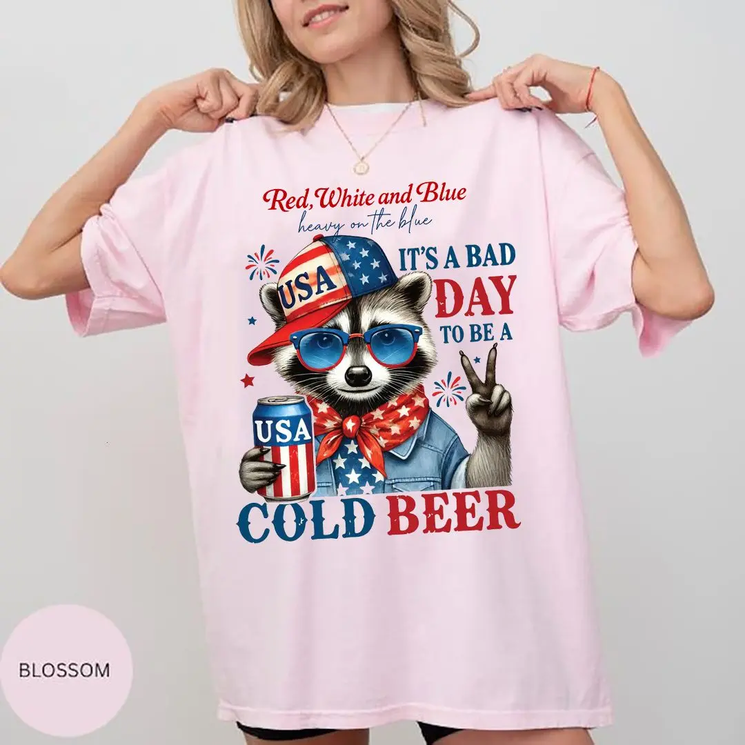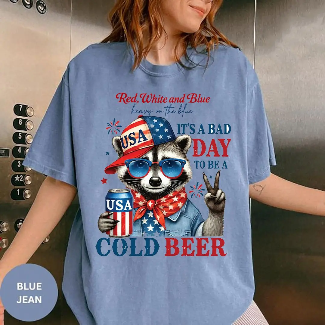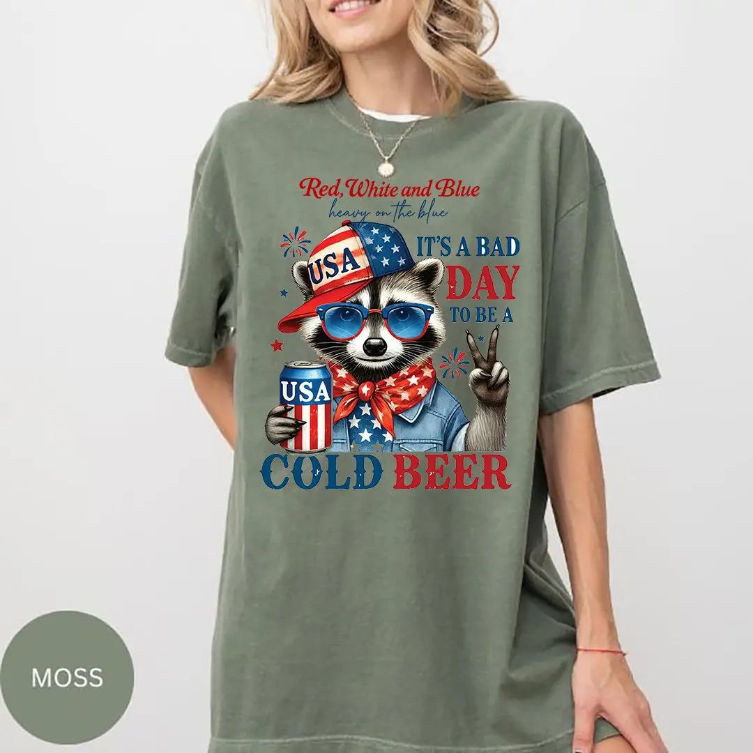 5. Funny Raccoon USA Cold Beer Shirt, Patriotic 4th of July Party Tee, Red White Blue Outfit, Summer BBQ Drinking T-shirt Comfort Colors.