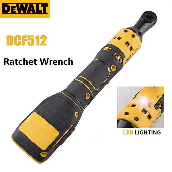 The DeWalt DCF512Cordless Ratchet is powered by a high-efficiency brushless motor, delivering 70 ft-lbs of max torque for fastening and loosening tasks in tight workspaces. This cordless tool features a variable speed trigger for precise control and a 1/2" square drive with pin detent anvil for secure socket retention. The compact head design provides access to fasteners in engine bays and confined areas where standard ratchets cannot fit. A built-in LED work light illuminates dark work areas, and the glass-filled nylon housing offers resistance to automotive fluids and solvents. The forward/reverse rocker switch allows for quick direction changes, and the trigger lock prevents accidental activation during storage. The tool can also be used manually in both directions when additional breakaway torque is needed. Bare tool only — battery and charger sold separately.