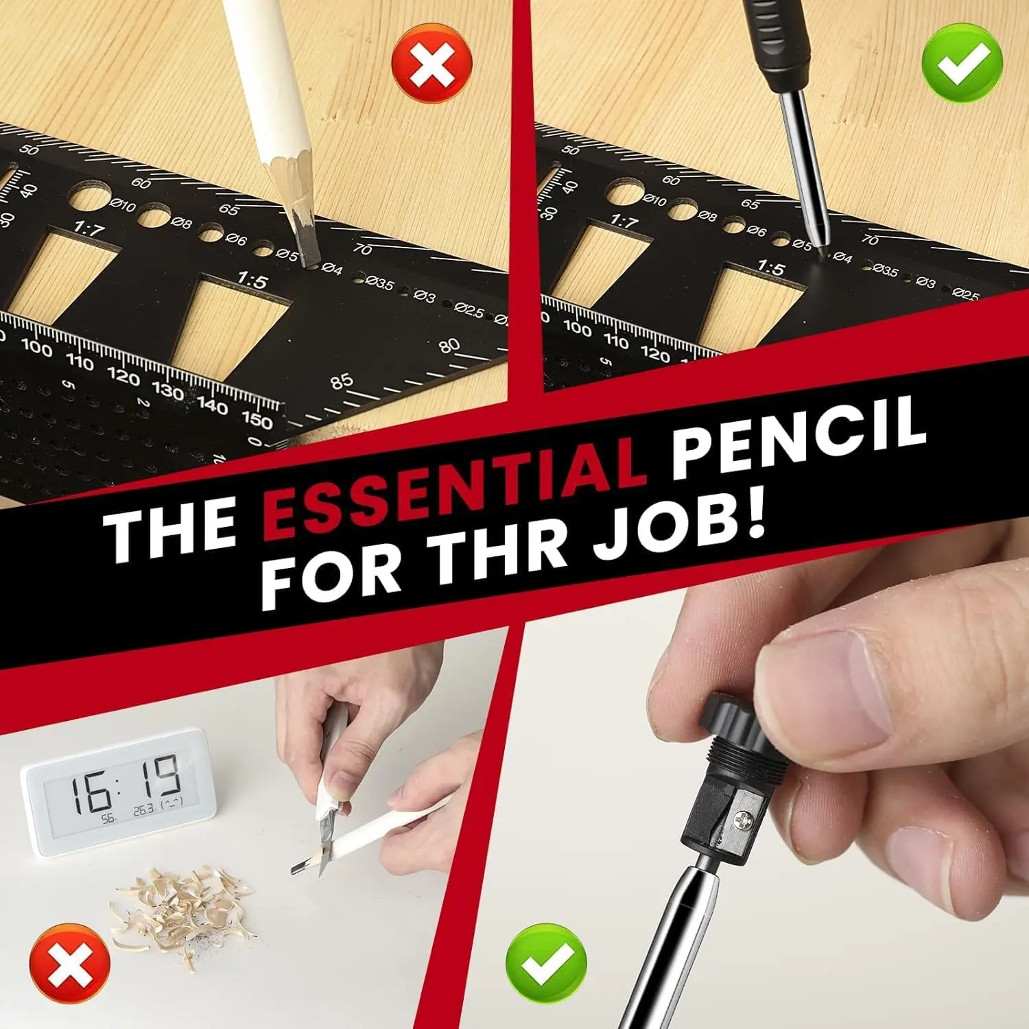 [VERSATILE ADJUSTMENT ]:You can change its shape according to your needs, only need to change the tightness of the pencil holder and nut to achieve different shapes to complete the demand.It can be locked and fixed after each adjustment to ensure precision accuracy.[HIGH QUALITY]: It is made of high quality with aluminum alloy that surface is with anodic oxidation treatment, which could help to extend the service life of the product.[Combination Pack]Prepared a combination pack to solve the problem at once.Saker Contour Gauge Profile Tool and Saker Deep Hole Pencil are a perfect match.[COMPACT]:The size of the product is very small, the weight is also very light, you can put it directly in your pocket.Its unique design of shirt trouser belt clip makes it easy to carry and storage.[UNLIMITED CONNECTION]:Saker Connection Contour Gauge can be Unlimited Connection Contour Gauge. Saker Connection Contour Gauge can be used to measure the shape of irregular objects,instant template for marking precise tile cuts . You just press the contour gauge on one of the shapes. Trim outline and cut into shape.