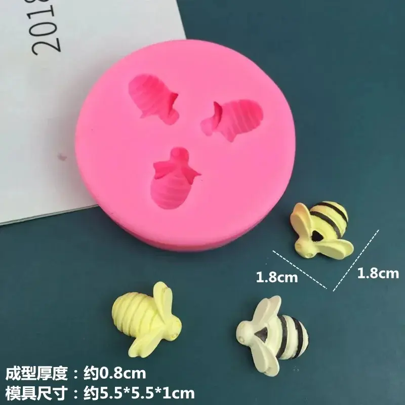 Weight: 3 bees: 30g, 3 bees of different sizes: 20g, 7 bees: 68g Color: random Material: silicone. Withstand temperature: - 40 ~ 230℃ Usage: Cake, bread, mousse, jelly, prepared food standards, chocolate, etc Safe for use in ovens, microwave ovens, dishwashers and refrigerators Features: Kitchen supplies, baking utensils, easy to clean.