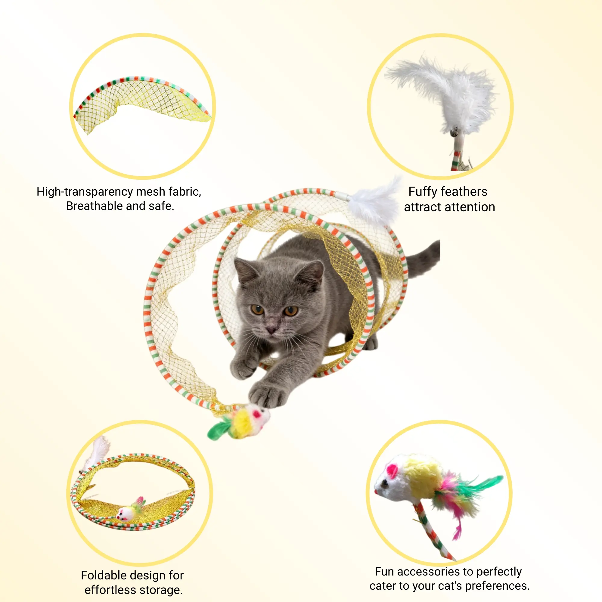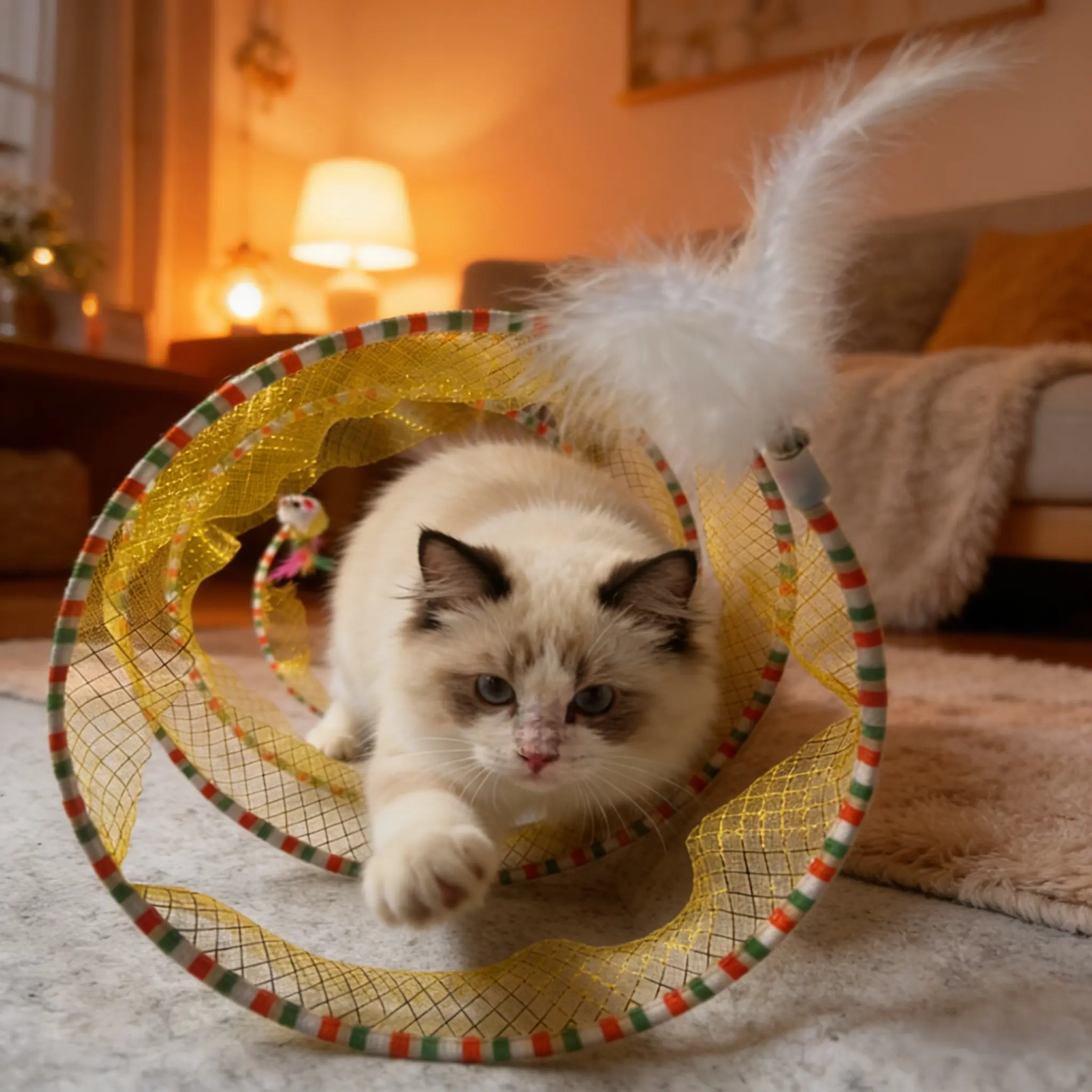 Got an indoor cat that’s driving you crazy with destructive scratches, knocked-over vases, or endless couch naps? Our spiral tunnel cat toy is HERE to save the day! The wiggly, flexible tunnel + cute feather mouse mimic real prey—triggering their natural hunting mode INSTANTLY. Watch them pounce, chase, and bat for HOURS… your furniture (and sanity) will thank you!